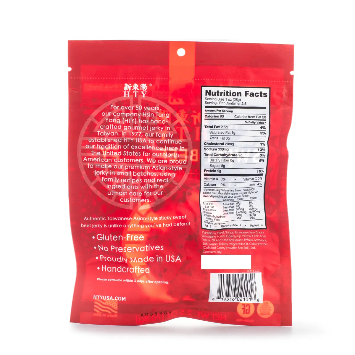Hsin Tung Yang Sweet Beef Jerky 2.5 OZ - Authentic Asian-style Beef Snack, Gluten-Free, No Preservatives