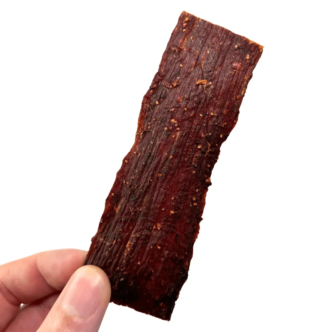 The heat, the texture, the toughness were all very good! Only improvement I could recommend would be if it could be a little bit tougher. That being said, it is so hard to find tough jerky anymore so I was happy to find jerky.com and see that you offer "an old fashion style beef jerky."