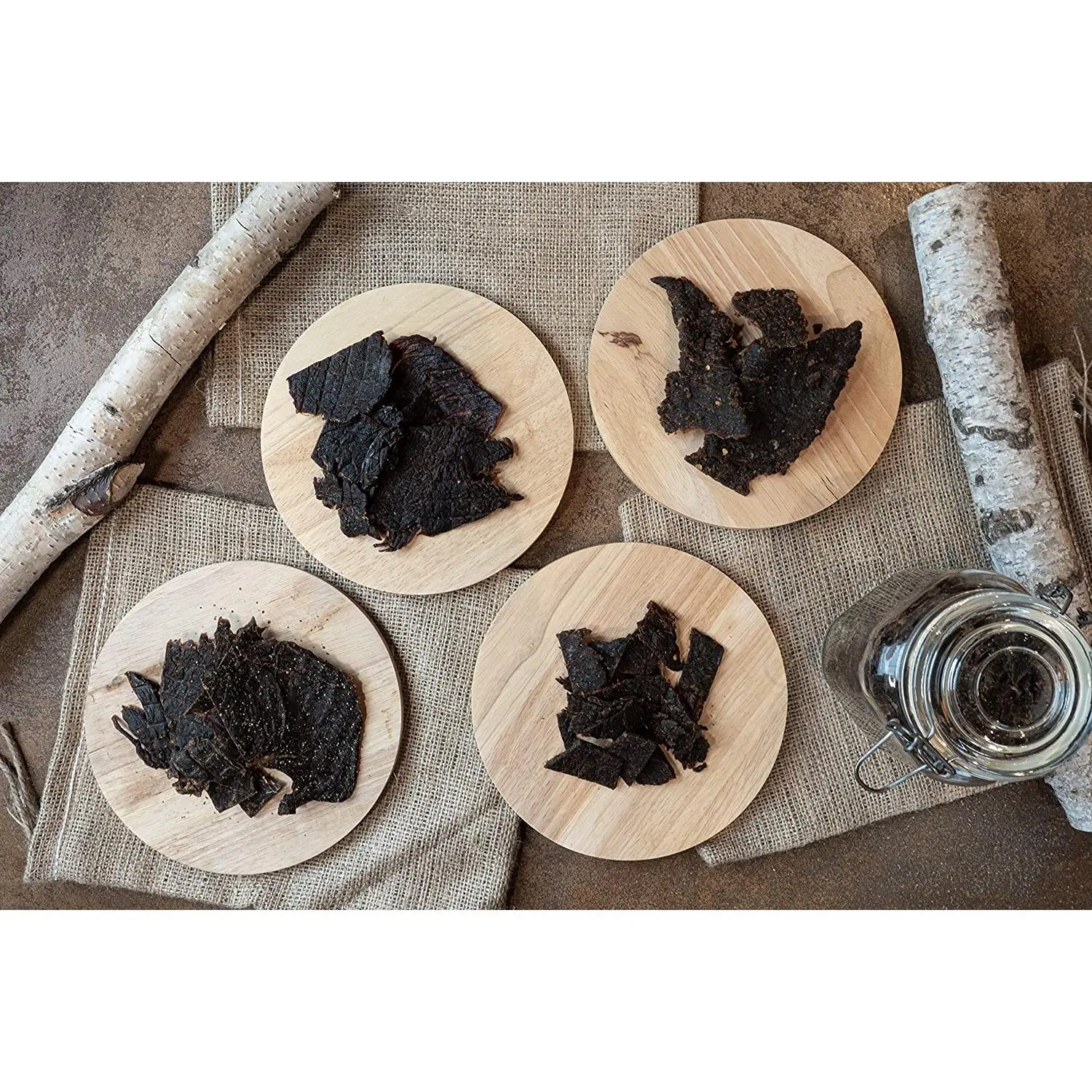 In my opinion I did not like this jerky at all they were all pretty rough/dry ..very thin also flavor was definitely not it at all . I’d rather eat the jack link gastation jerky. Very small quantities in each bag also took about a week to get mailed to me.