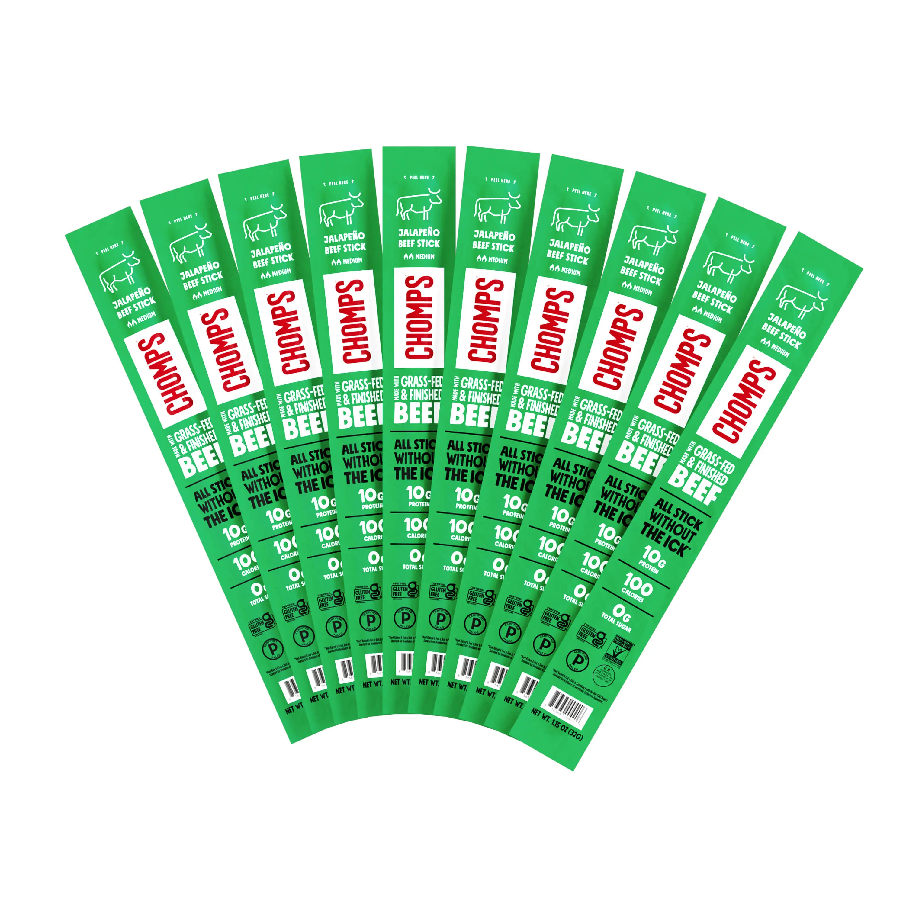 100% Grass Fed and Finished Beef Jalapeño Pepper Sea Salt Celery Black Pepper Red Pepper Garlic