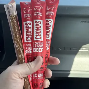 The original beef Chomps are SOO delicious, I love them for on the go, I put them in my emergency snack pack, I eat them late at night when I have pregnancy hunger pangs lol - They're flavorful, have a mild bite of spice, perfect texture, just the right amount of protein for a quick fix and BEST OF ALL healthy! I also send them w/ hubby for his lunches and he loves his meat sticks :) THANK YOU CHOMPS!!! We love you!