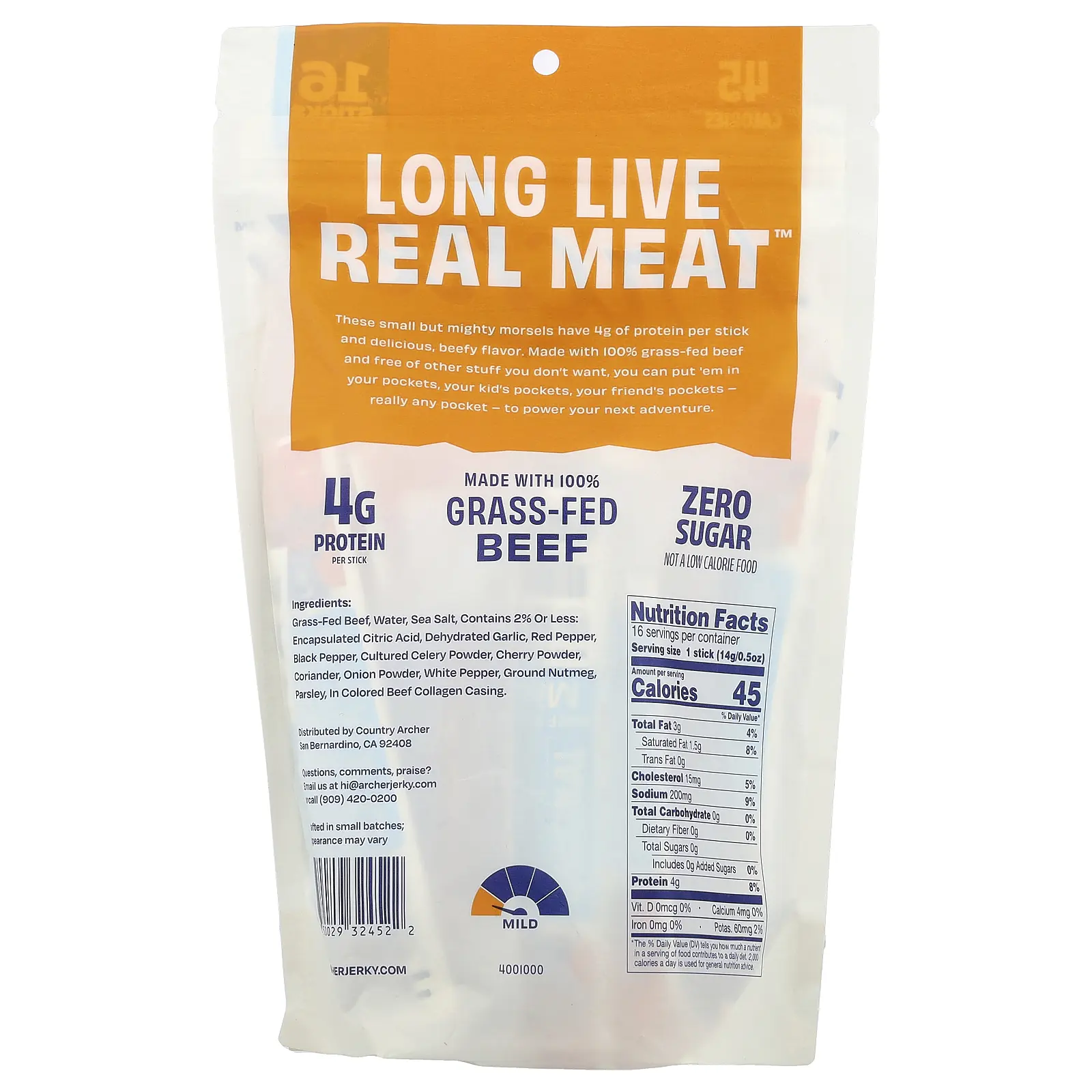 Country Archer Jerky Grass-Fed Beef Sticks Minis, Original , 16 Sticks, 0.5 oz (14 g) Each