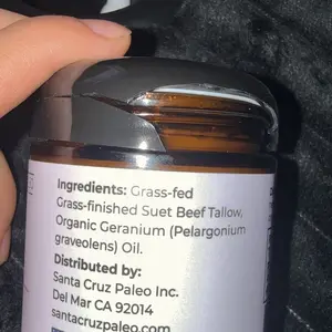 IngredientsGrass-fed Grass-finished Suet Beef Tallow, Organic Geranium Oil.
