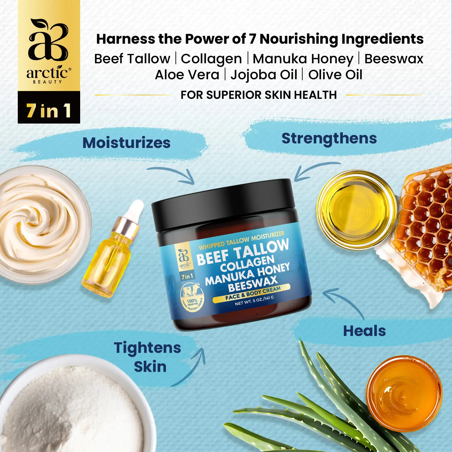 Arctic Beauty Beef Tallow, Collagen, Manuka Honey, & Beeswax