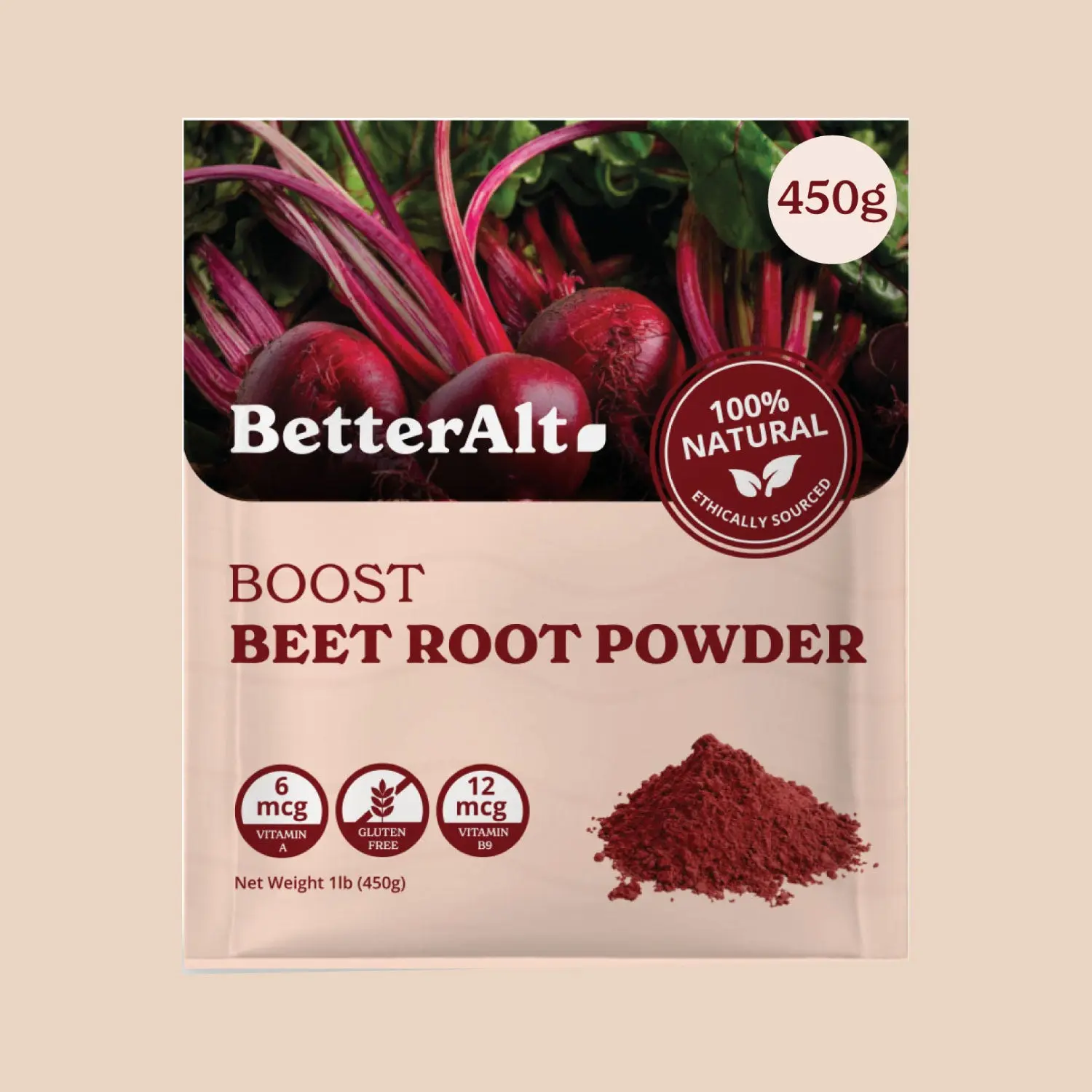 ·BetterAlt Beetroot Powder helps provide a natural nitric oxide boost, helping in enhancing energy levels, and overall health*