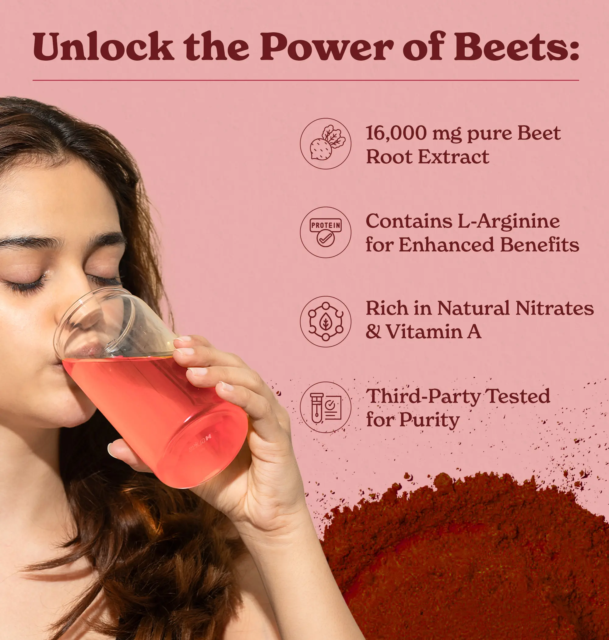 ·This beetroot powder is packed with essential nutrients like Vitamin C, folate, iron, and manganese, and also includes black pepper with dietary fibers, which help aid digestion and promote immune function.*