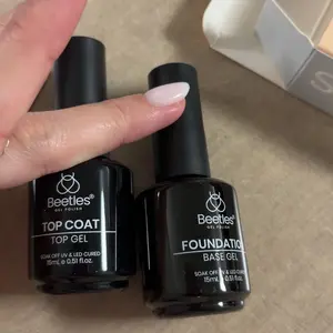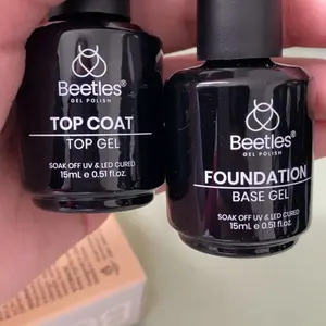 Beetles No Wipe Top Coat and Base Coat: Enjoy long-lasting wear for over 28 days with a perfect shine. The flexible top coat prevents nicks, chips, and smudges. Tip: The base coat is designed to remain sticky, providing a solid foundation for the next coat of polish. (Note: The base gel should not be used as glue.)