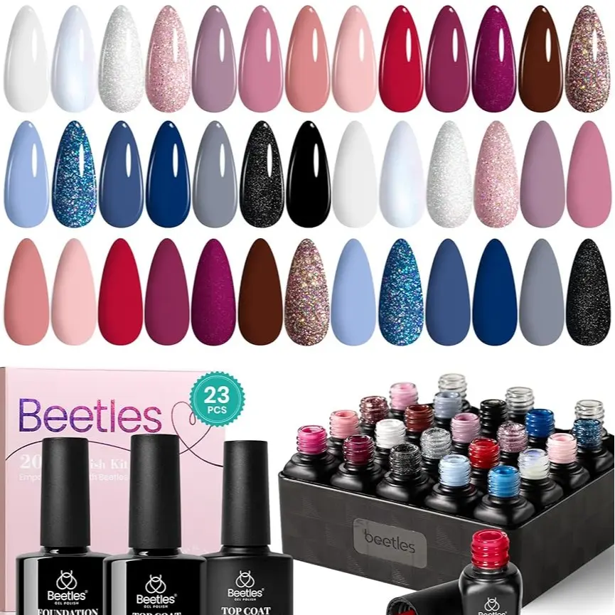 I love this set. I have been using beetles brand since January and this is my second set I bought. I love the color palle. People stating it “peels” I believe just put too thick of a layer on when polishing. Do thin layers and two coats and no peel. Did my nails 2 weeks ago and no peeling.