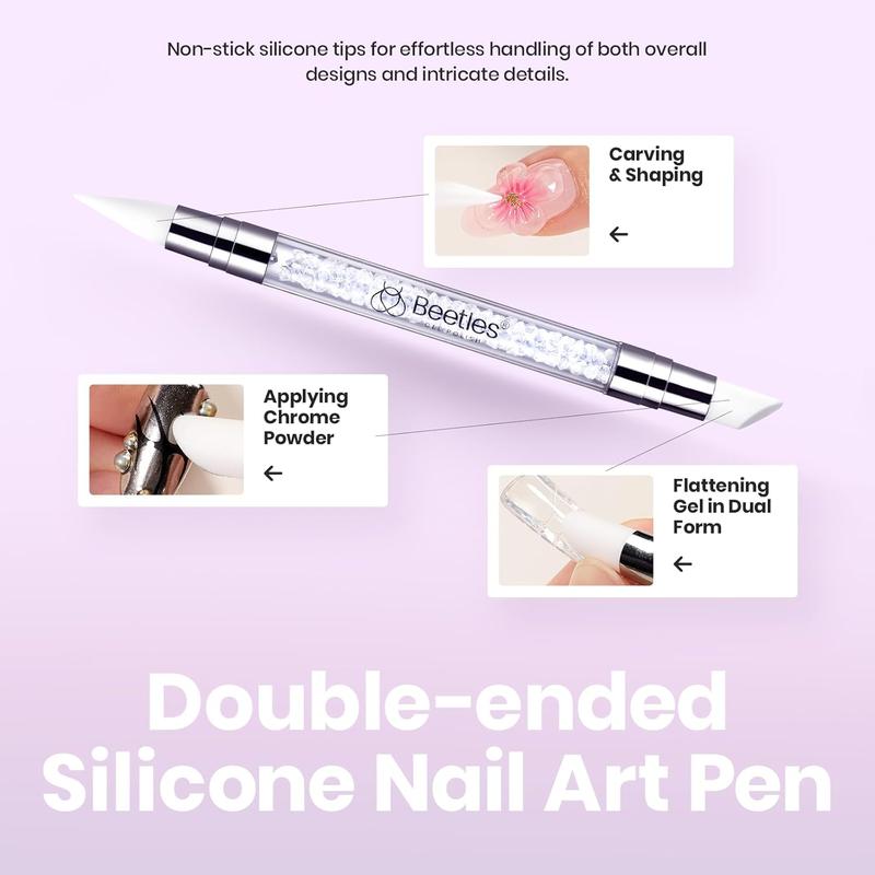 ·With Dual-Ended Sculpture Pen: Comes with chrome nail powder and a thoughtfully designed dual-ended silicone pen. The silicone material resists sticking to the gel, while the dual-ended design allows for both broad and intricate detailing, ensuring a flawless finish for your nail art.