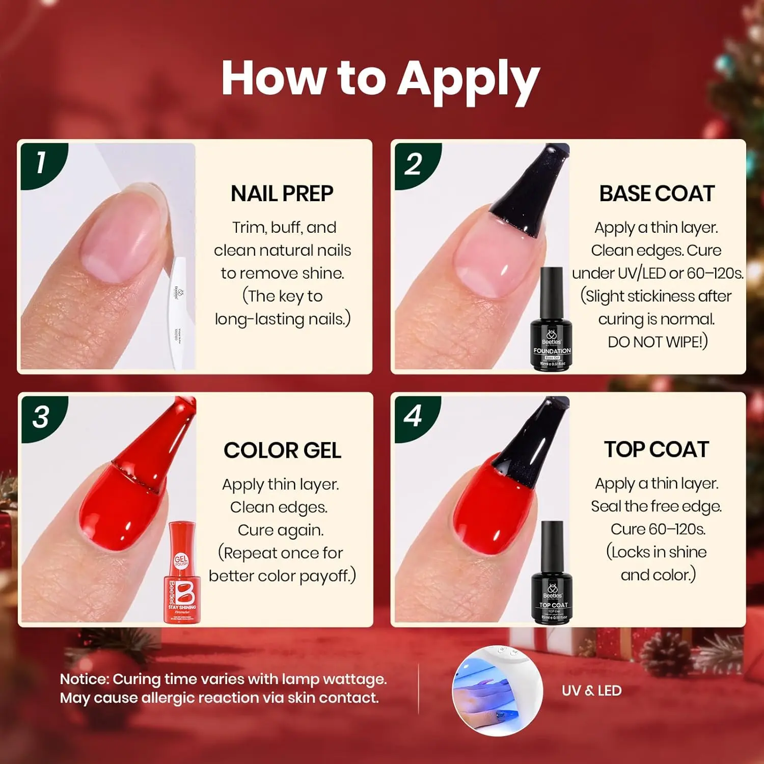 ·Simple 5-step process: Prep Base Color Top/Matte Cure. Ideal for beginners or nail enthusiasts to create stunning holiday nail art effortlessly.