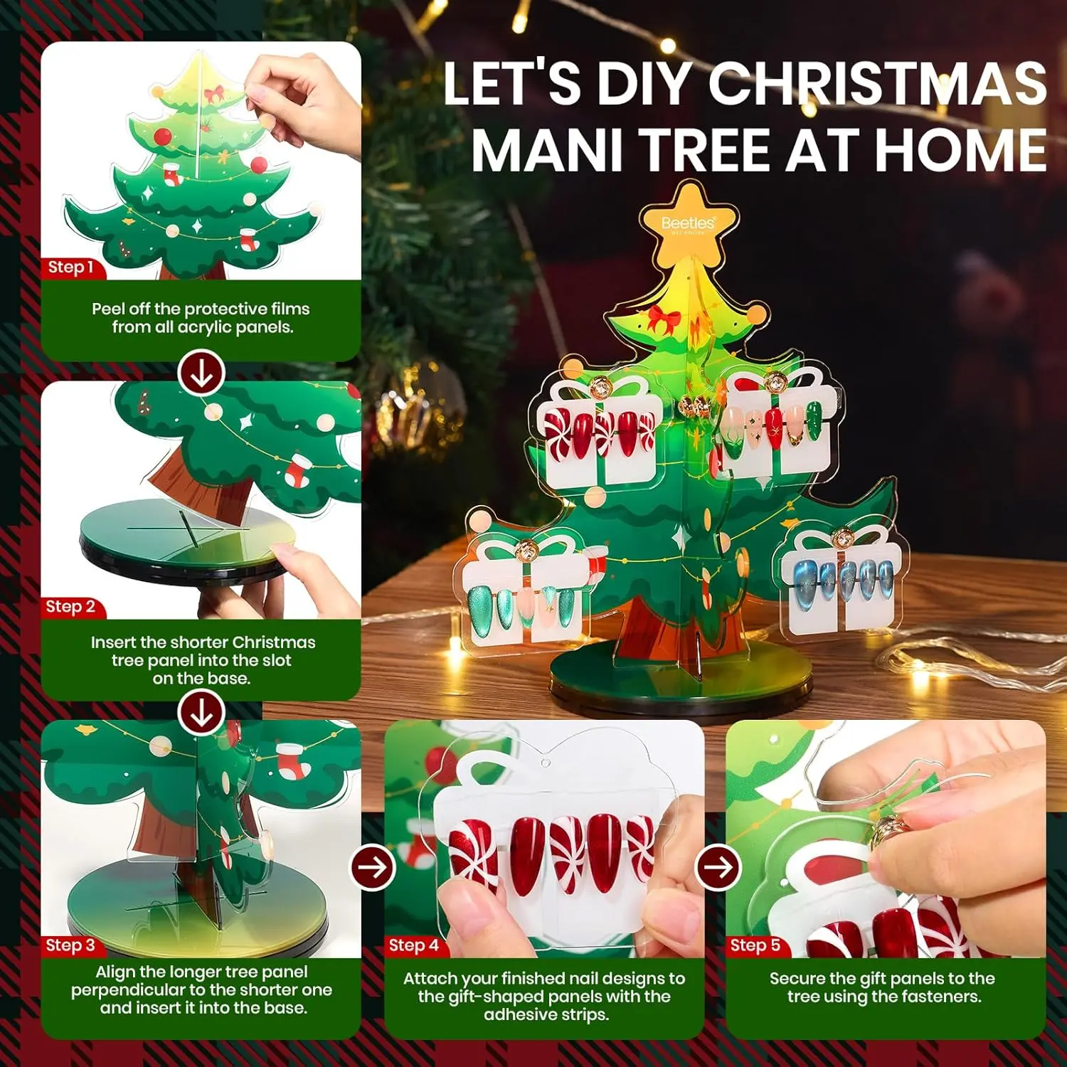 ·Exquisite Christmas Tree-Shaped Display Stand: Features holes for displaying press-on nails, fake tips, and jewelry.