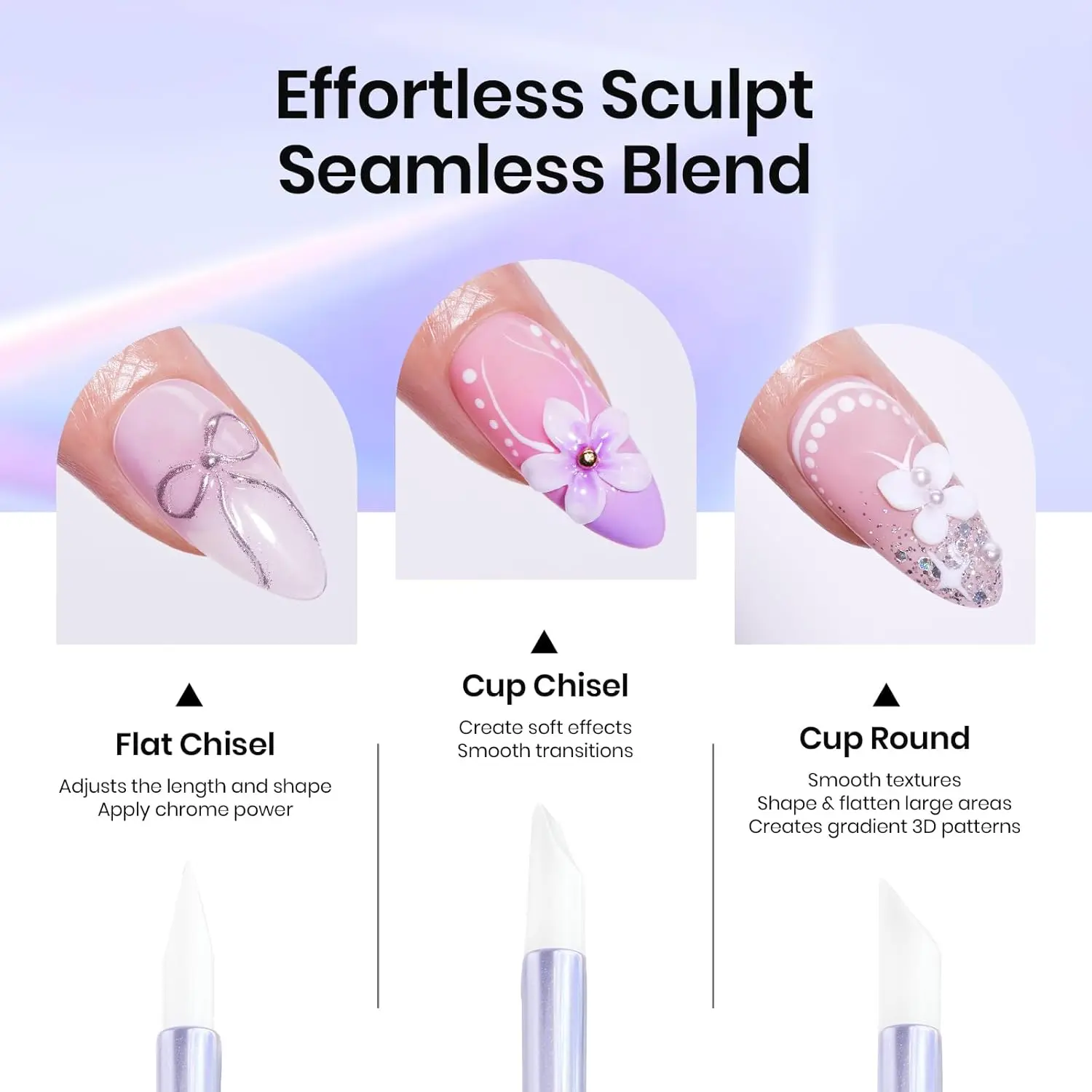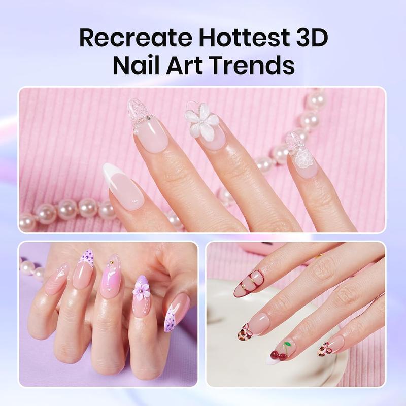 ·5Pcs Silicone Nail Tool: Equipped with five different silicone tips, it effortlessly carves intricate flowers and various patterns onto nails, catering to all your creative needs for 3D nail art. Whether you prefer minimalist styles or grand designs, it handles them all with ease.