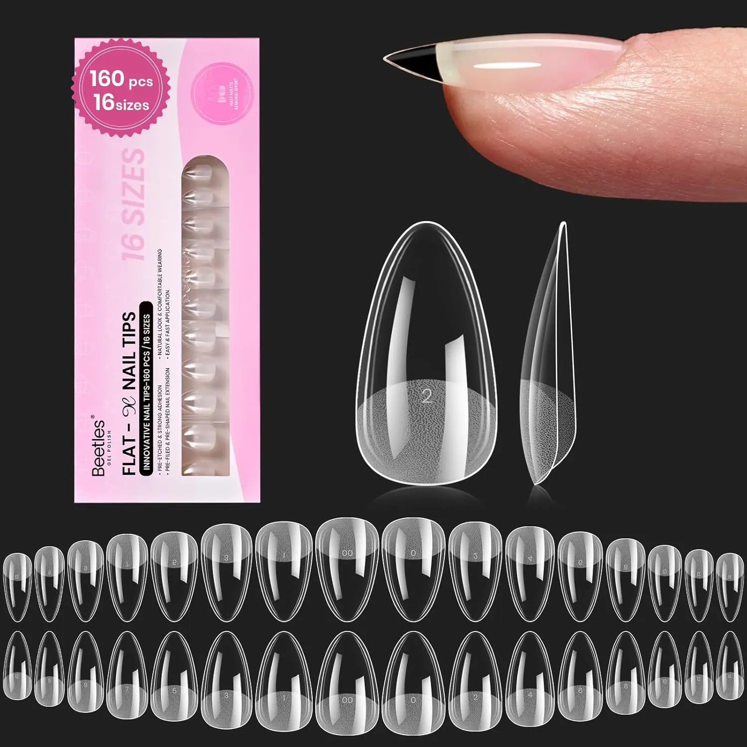 These are absolutely awesome! Never could figure out why other nails and press ons never worked. Now I know. Just applied the Beetle's flat-x nail tips in the shape almond short, and they fit beautifully!!