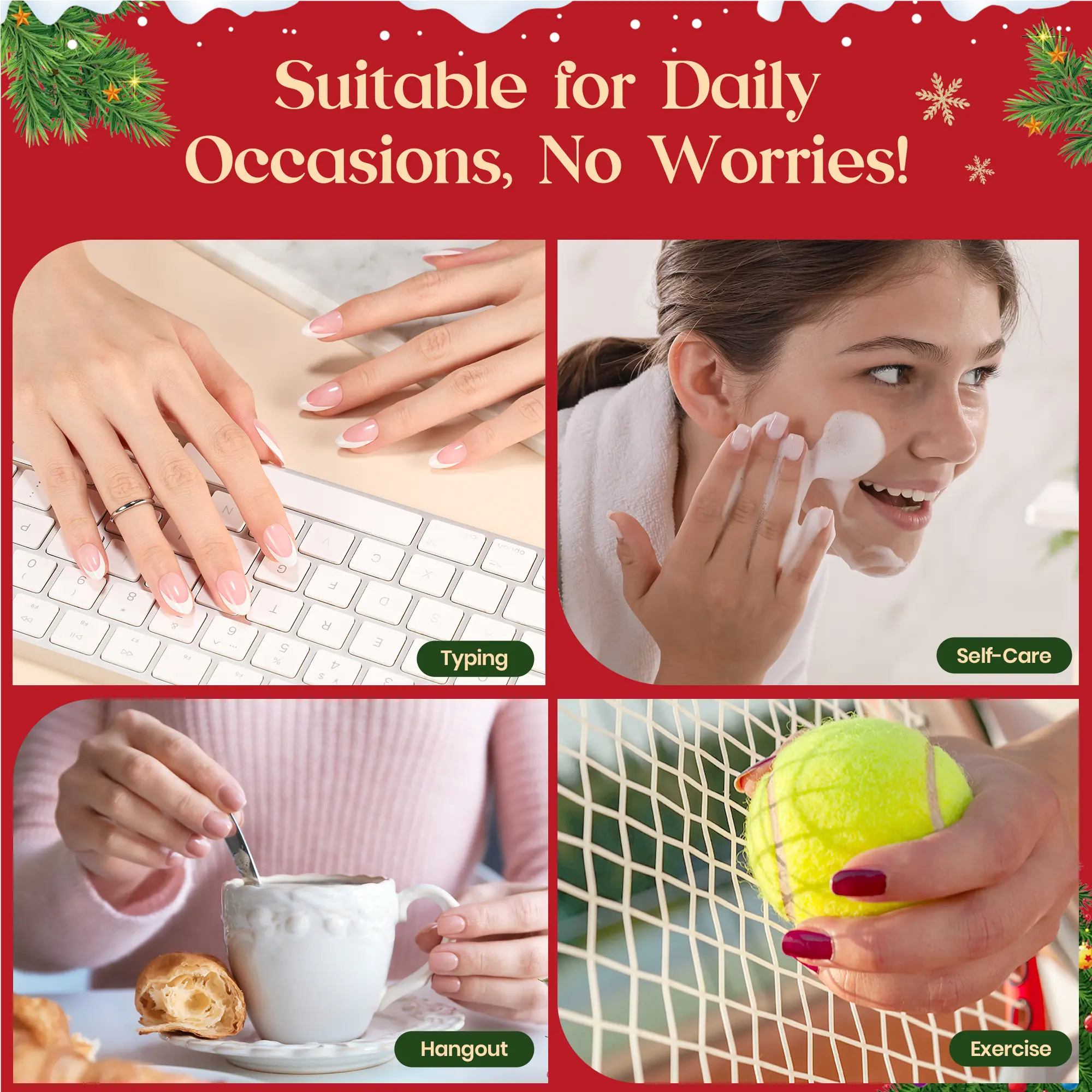 Short Almond【Pink】16Sizes 224Pcs Chrismas Kit, Multicolor