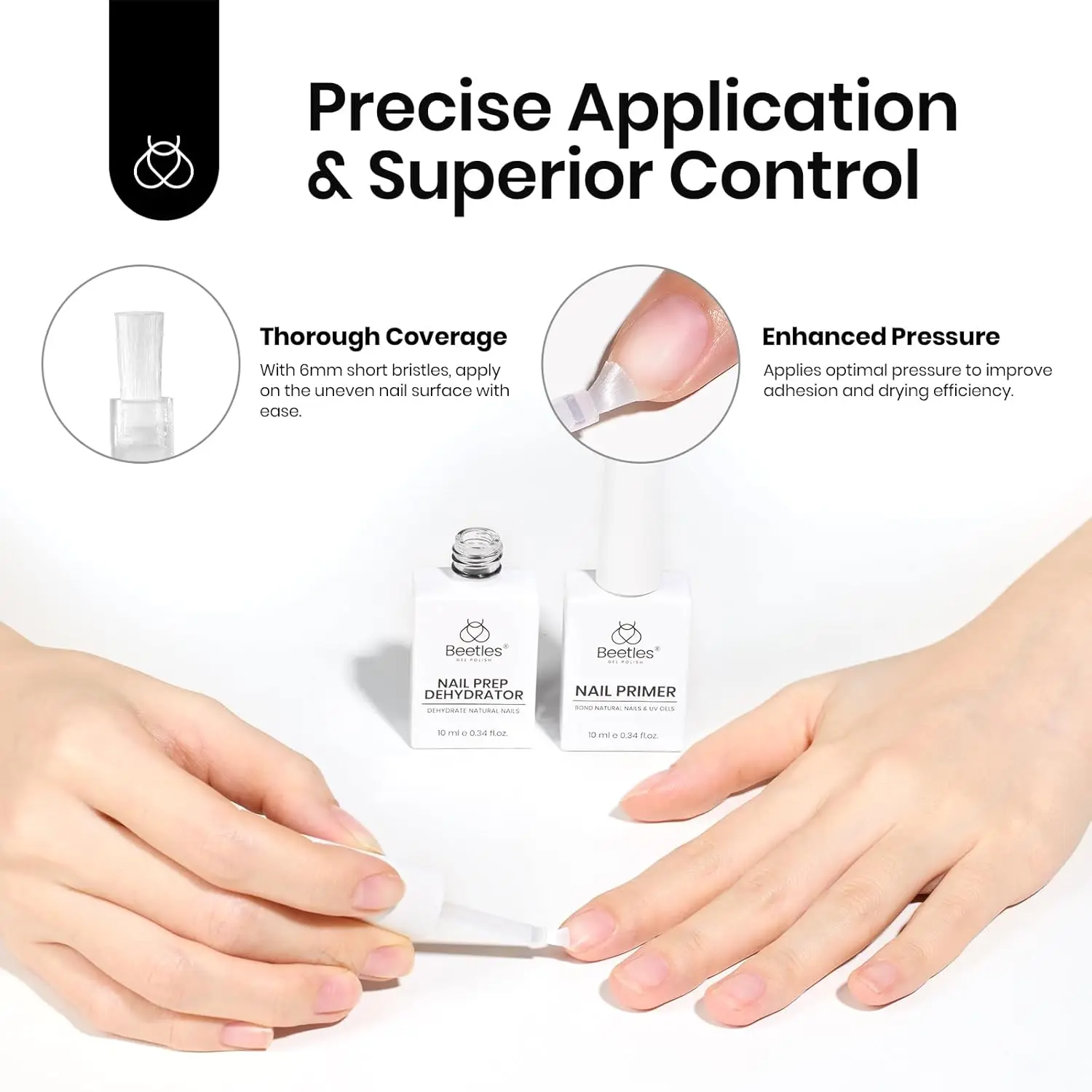 ·Healthy ingredients nail tech must have set: The formula of ACID-FREE & HEMA-FREE is safer for nails, without burning sensations and irritating odors. They are great for healthy or sensitive skin.With 6mm short bristles, apply on the uneven nail surface with ease.Applies optimal pressure to improve adhesion and drying efficiency.