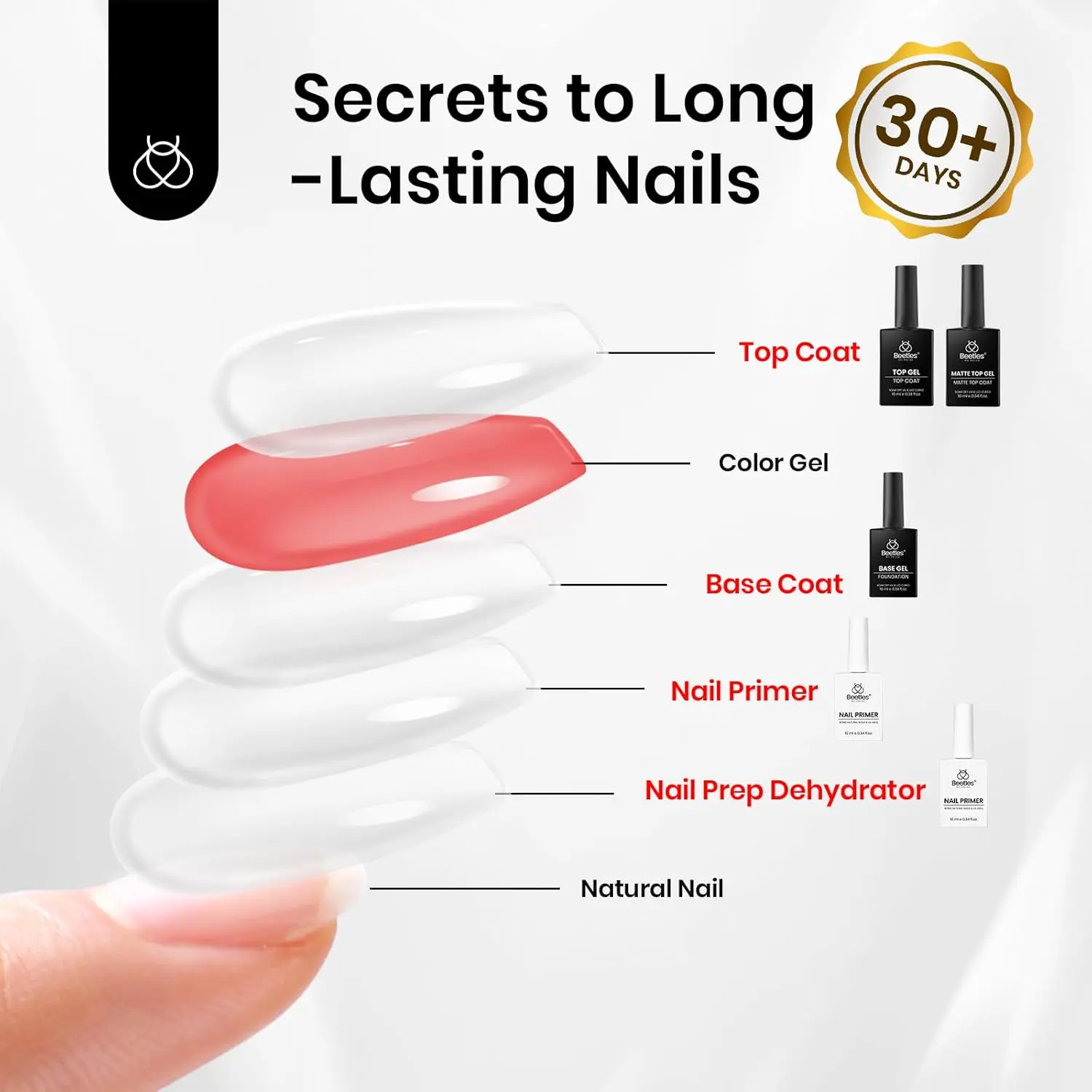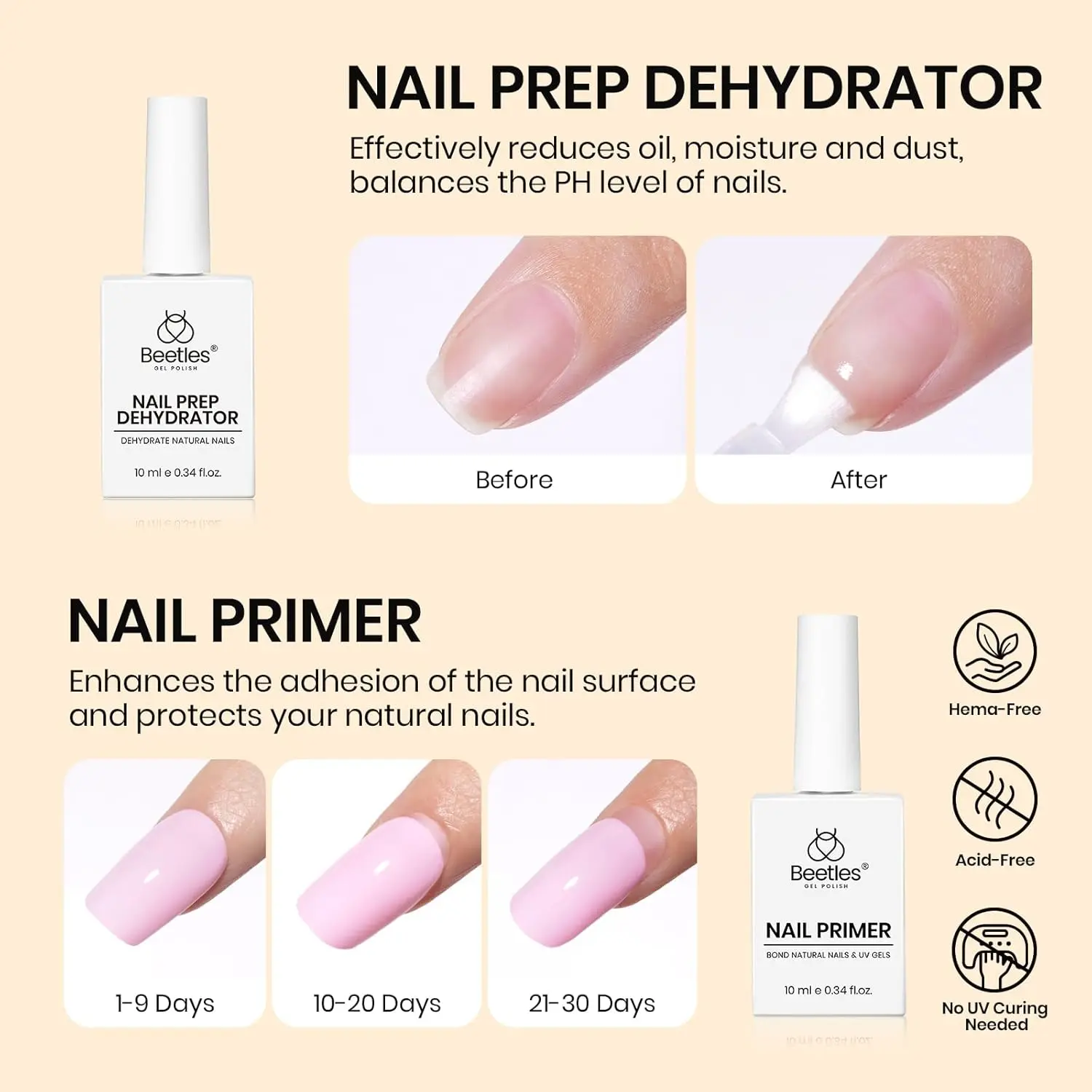 ·Warm Note: Beetles nail dehydrator and primer,gel base and top Coat set is professionally formulated for nail use only. Avoid contact with eyes and mouth. In case of contact, rinse with water immediately. If you feel unwell, discontinue use and seek medical attention. If you have any questions about the product, please do not hesitate to contact us.