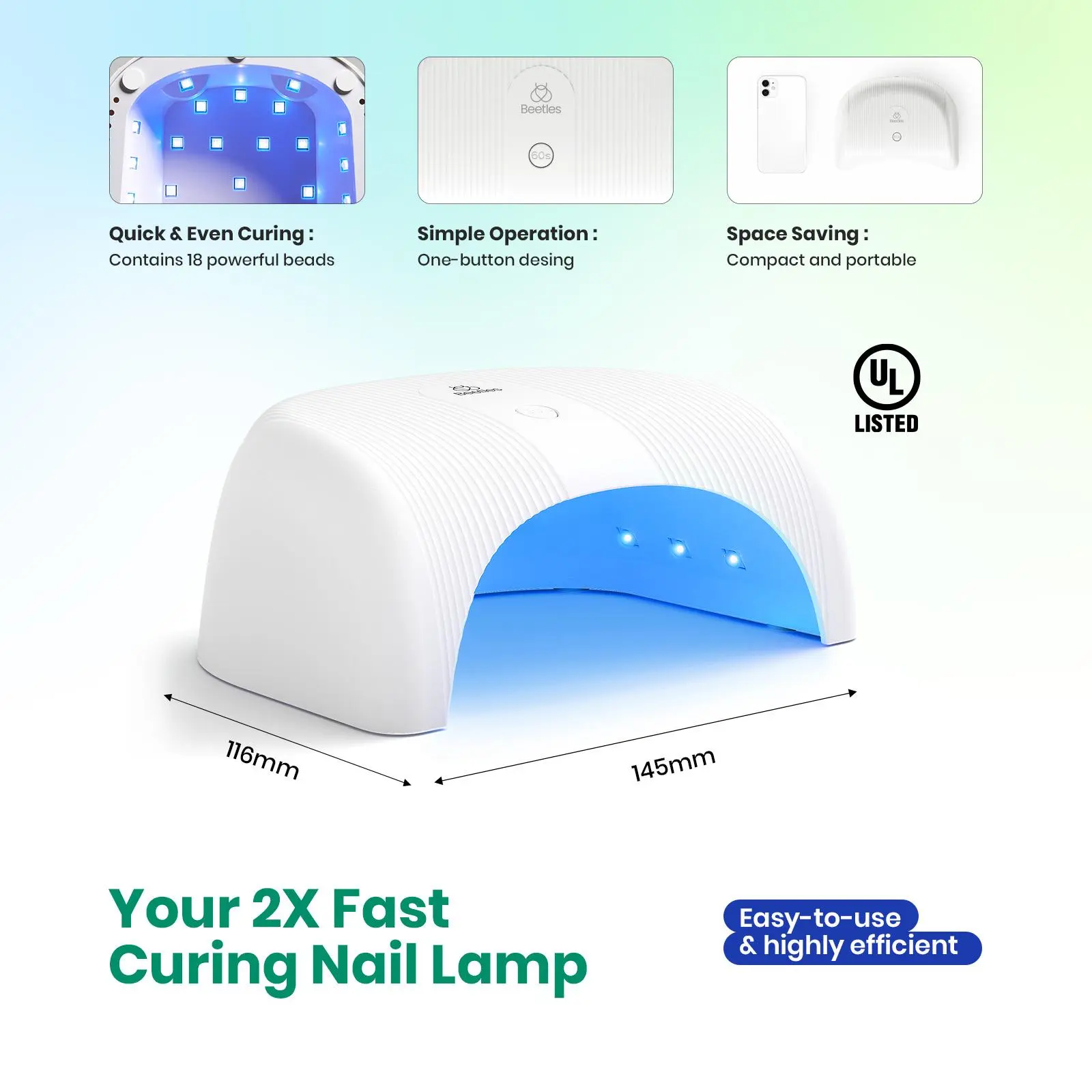 High-Power Nail Lamp - 36W UV LED lamp with 18 beads ensures quick, even curing for all gel polishes.