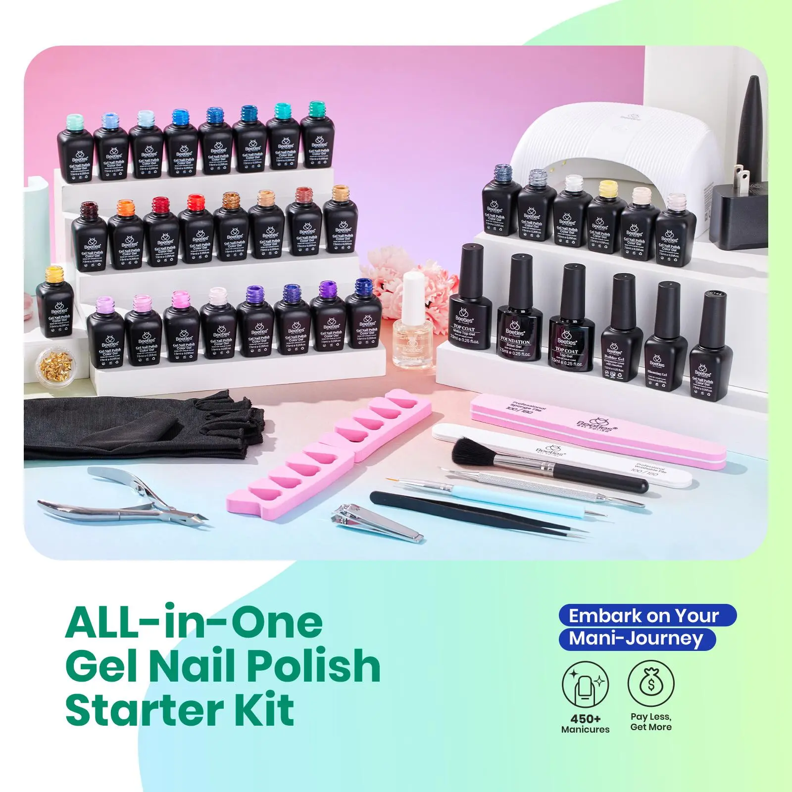Healthy & Affordable - A complete Beetles gel polish kit for safe, long-lasting, and cost-effective at-home manicures with family and friends.