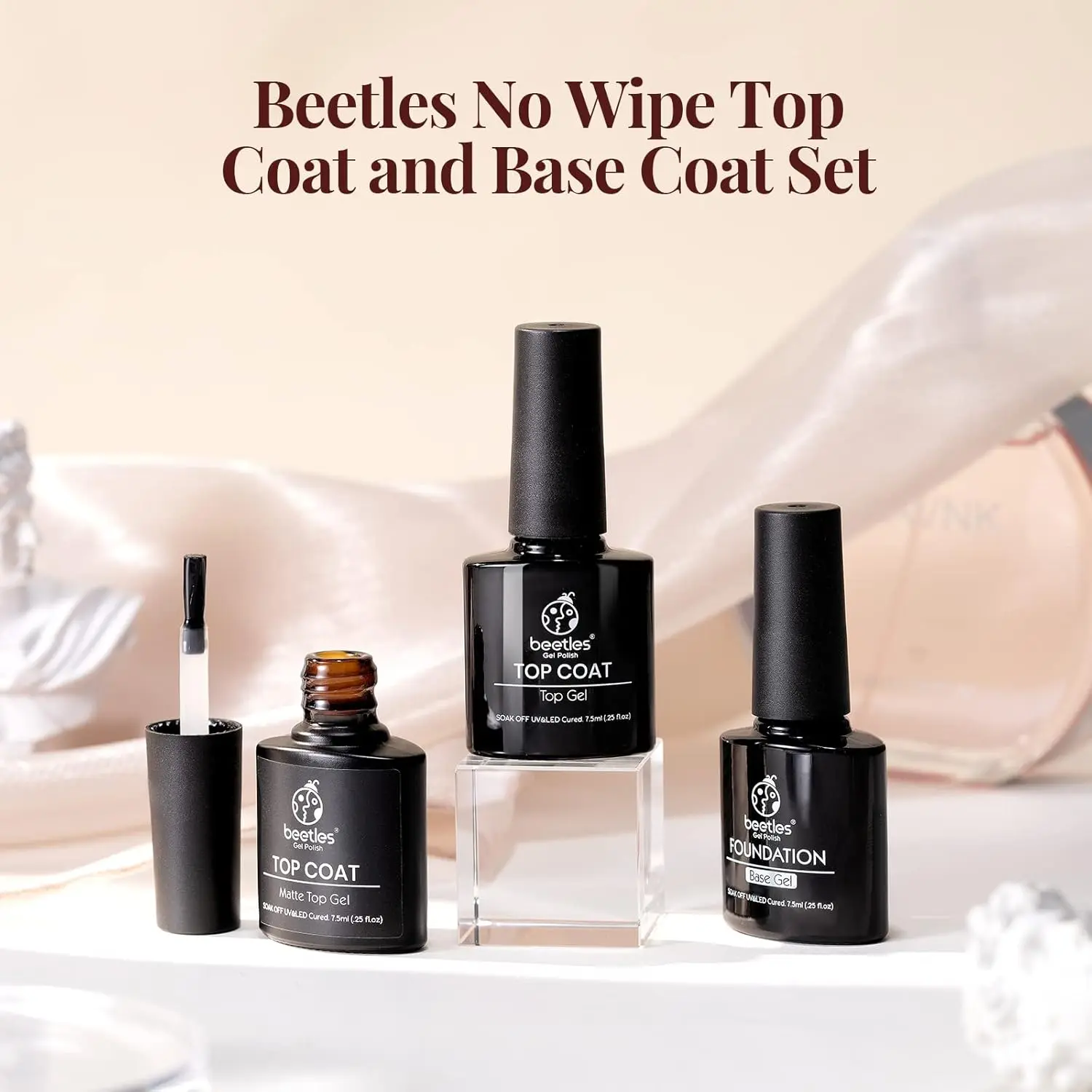 ·Beetles Gel Nail Polish Base No Wipe Gel Top Coat: Long lasting for 28+ days. Flexible top coat gel nail polish avoids nicks, chips, and smudges. The beauty gift sets are suitable for beginners and professionals, enjoy your diy now. Tips: Avoid touching your nails after curing the top coat for 2 minutes to enhance the shine.