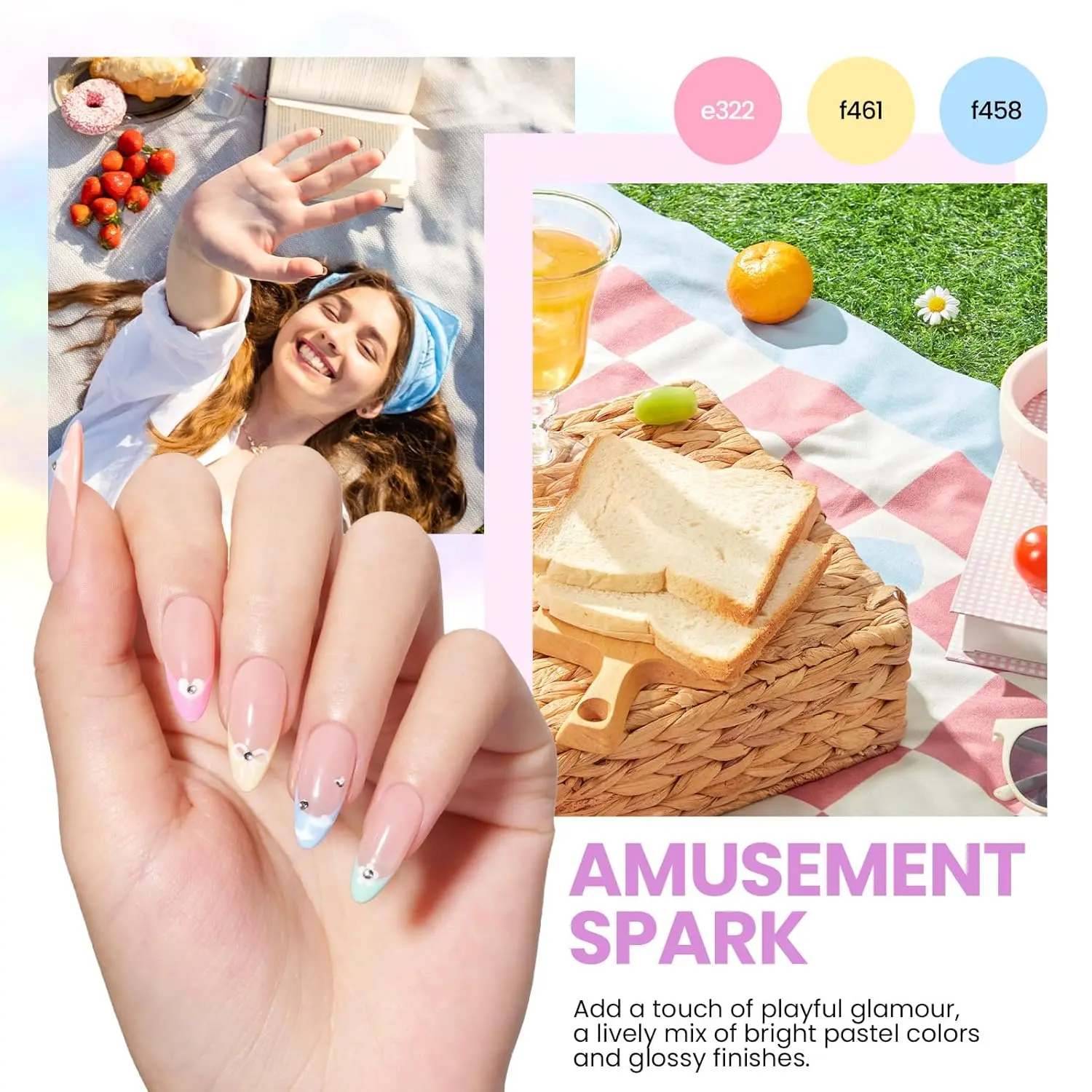 ·Spring Garden Party: Provide 8 popular spring and summer colors to meet the personalized needs of different users. The matching accessories can quickly create the most suitable nail art style for spring and summer. Different styles can be created to suit various occasions. It is very suitable for beginners and enthusiasts and can show your personal charm through different nail art styles!