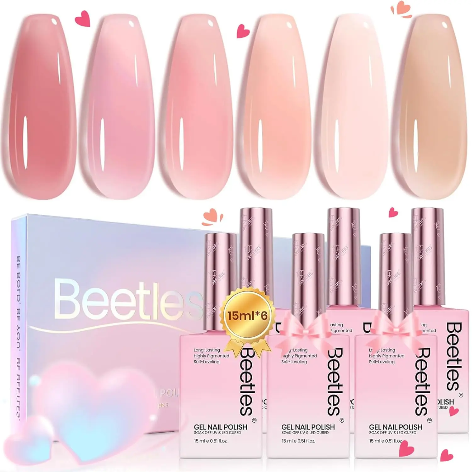 This took FOREVER to get delivered. UPS was having a hard time getting my package delivered to me. Lol after 1 1/2 weeks I finally got it and these colors are stunning! I love me a good jelly (transparent) nail polish. I almost want to get the other set but I feel they’re similar enough. I don’t know. Anyway, these polishes are so good and I love the bottles. Beetles is literally my number 1 for all things nails. Affordable and quality products. You can’t go wrong with Beetles!