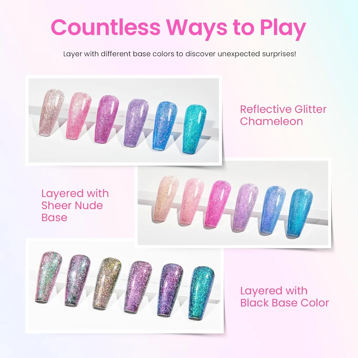 Love love love love these colors doesn’t take more than 2 layers to get the coverage or sparkle you want!!