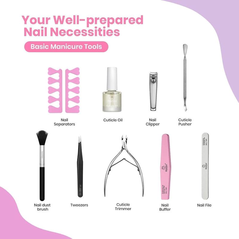 The Beetles Gel Polish kit is designed for a DIY manicure at home. It includes all necessary tools for a safer and more affordable nail experience. Perfect for sharing with family and friends, saving time and money. Choose the option that best suits your needs.