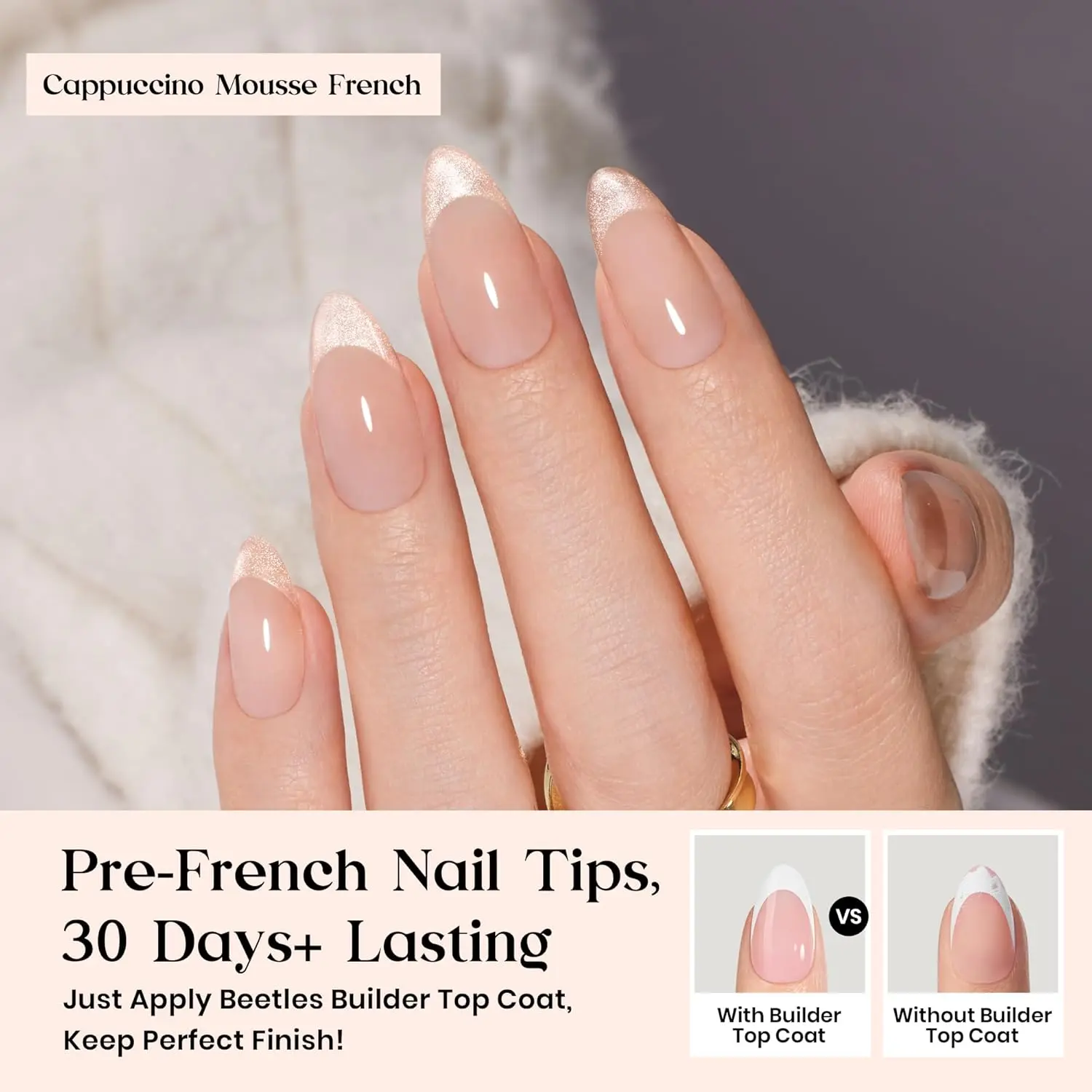 Love these!! I have never tried almond, I really liked them! Beetles has THE BEST press-ons!! I pop salon tips off at work after 1 shift. A week and a half with this manicure ans still going strong!