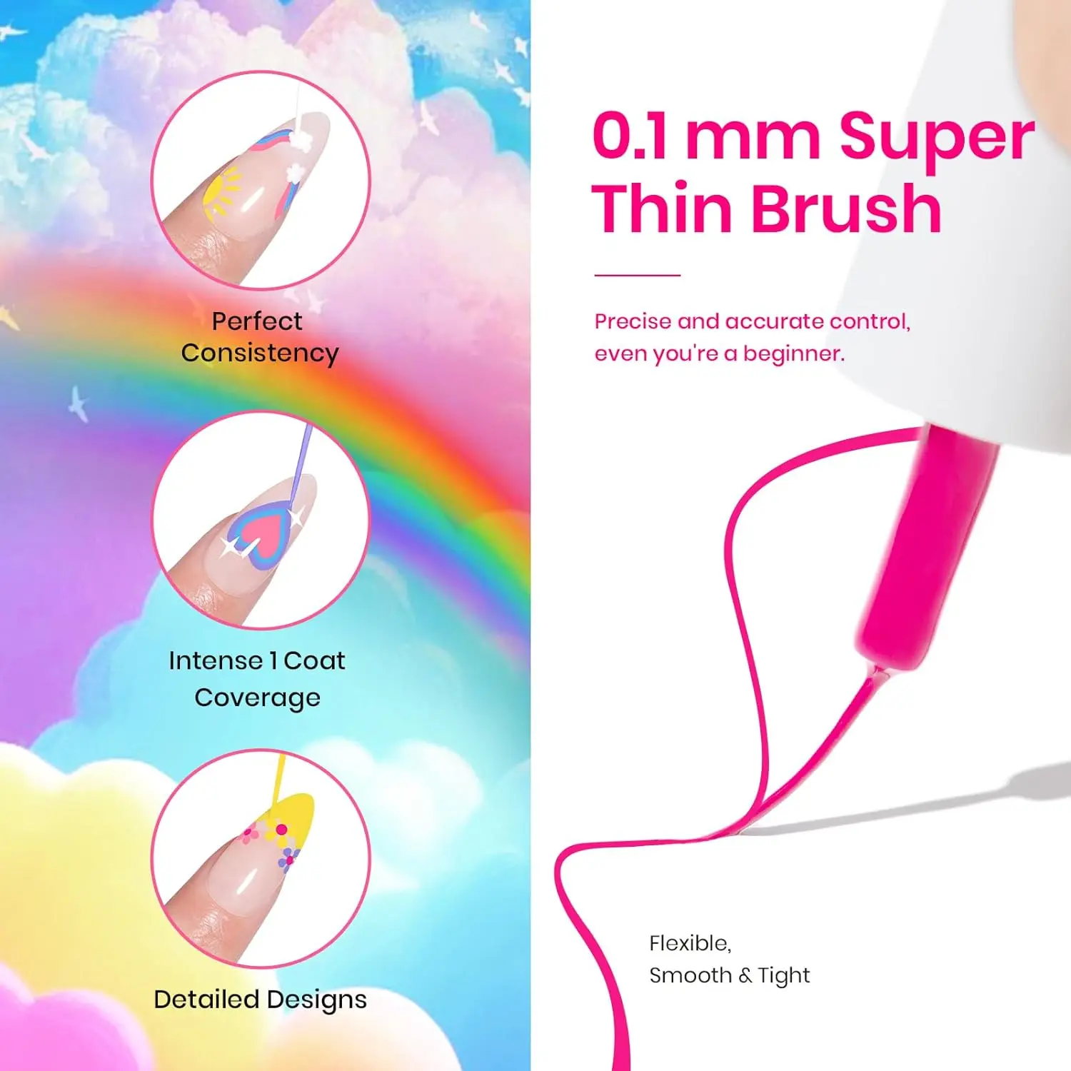 ·Awesome Pigmentation: Enjoy using this rather than gel paint and brush; it is easy, cute, and faster. Base and Top coat required. Average for LED nail lamp is 60-120 secs.