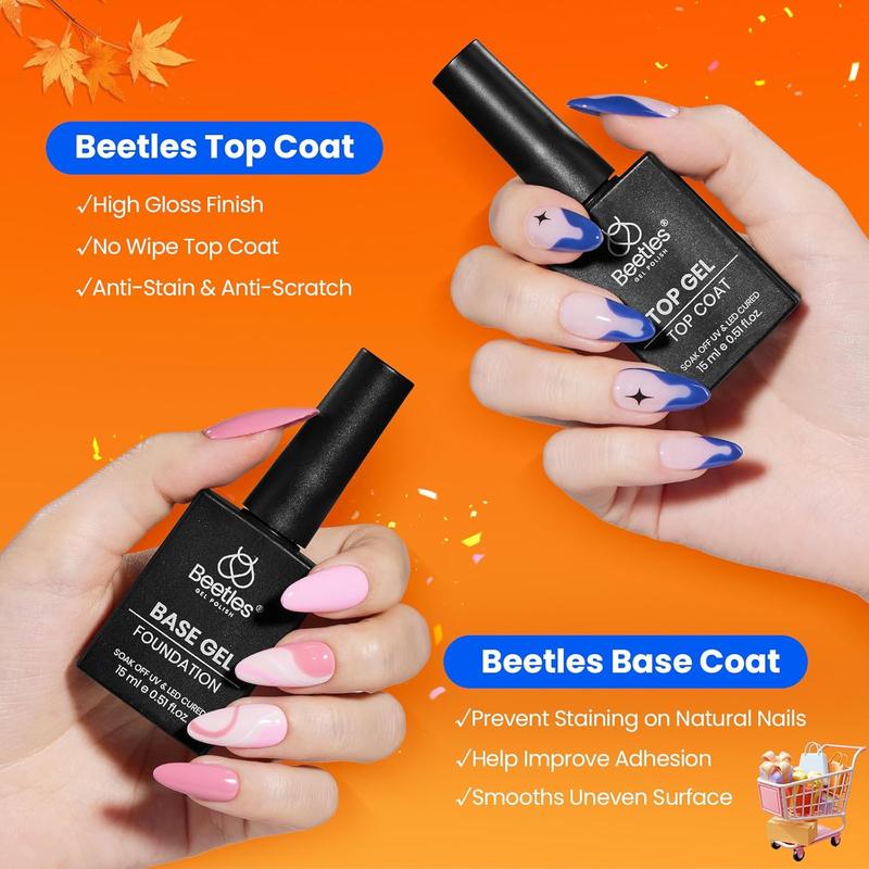 ·What You Get: Beetles gel polish no-wipe top coat and base coat set. They are both great for colored gel nail polish and manicure creation. Helps colored gel adhere to the nail bed and prevents gel from falling off.