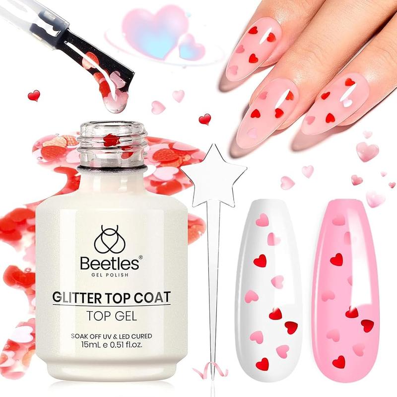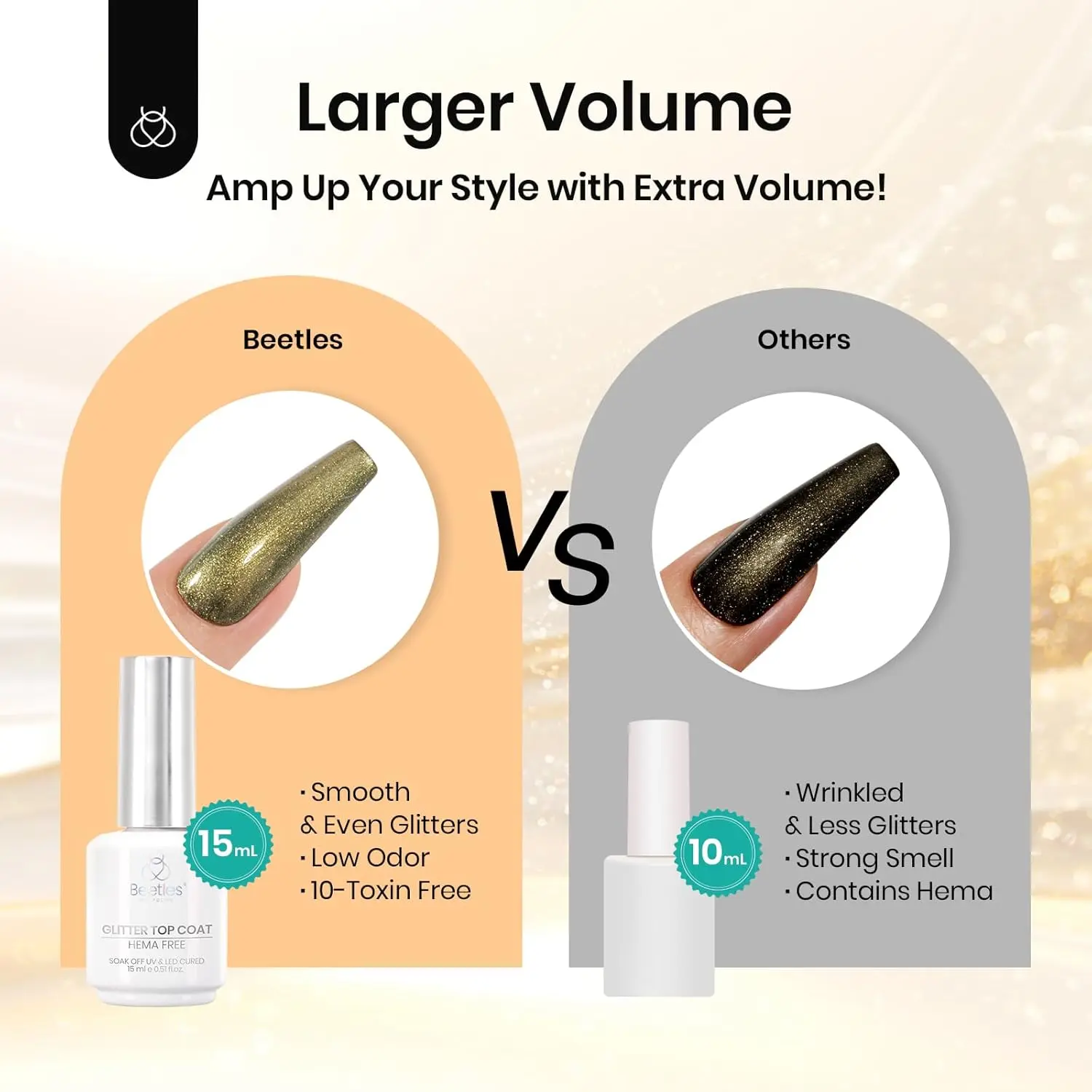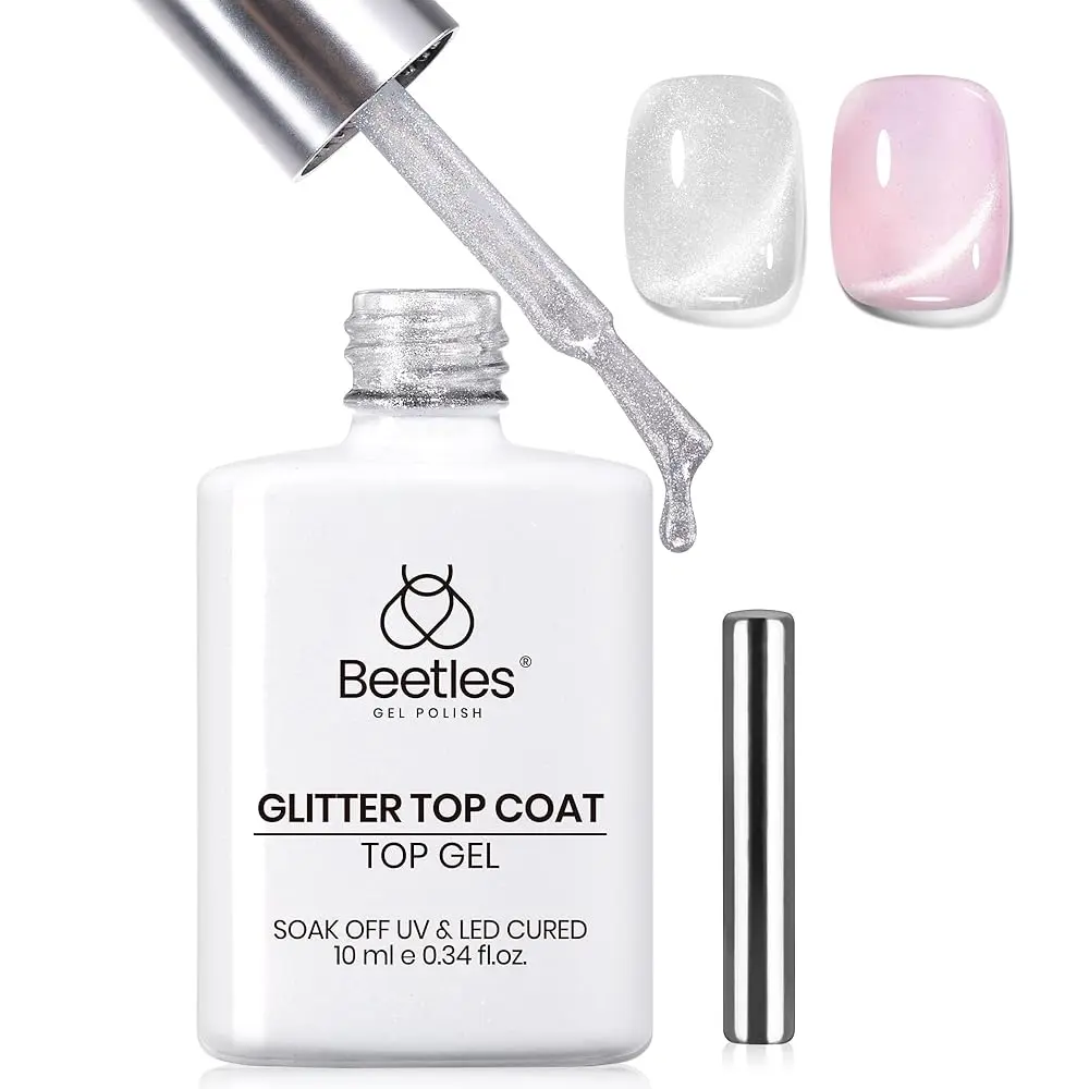 【Compatible with All Base Color】Beetles' unique top coat nail polish can turn any ordinary nail polish adhesive into sparkling and colorful styles, it can be used with all colors gel, different base color with different effect.