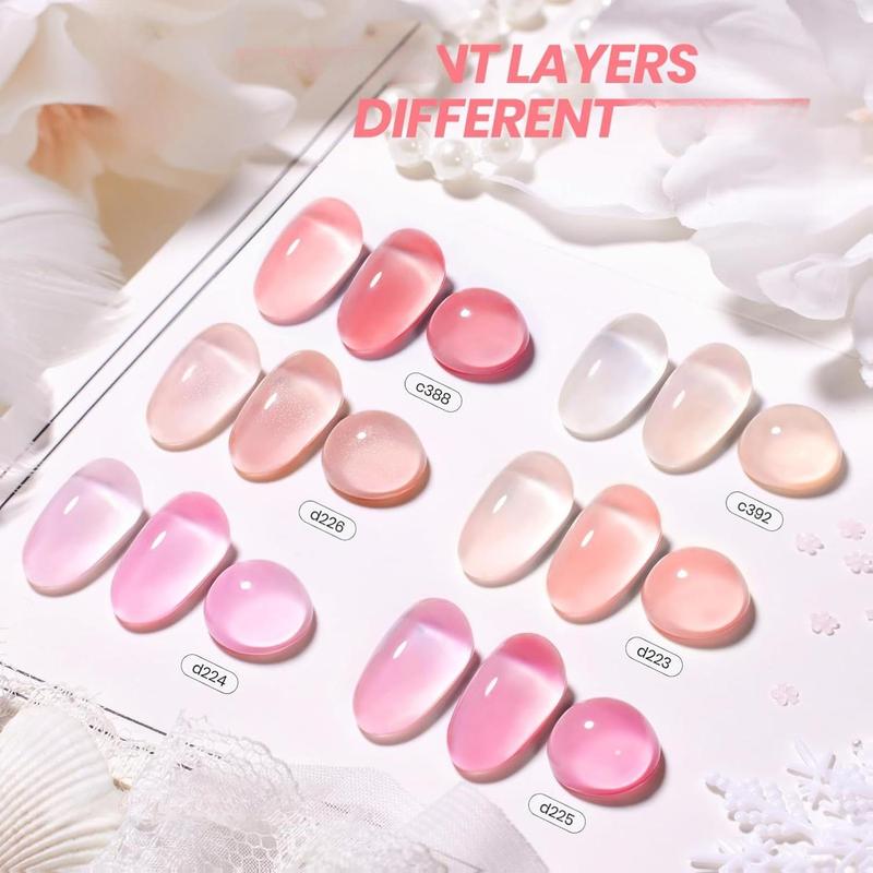 ·【Peach Color Sheer Gel 】Apply several layers to build up the color from clear translucent to solid opaque. Each layer, whether one, two, or three layers, creates a different effect. This peach nude pink color jelly gel nail kit is UV gel and need to be cured 60-120s. (Note: It must be used with a base coat and top coat, which are not included and need to be purchased separately)