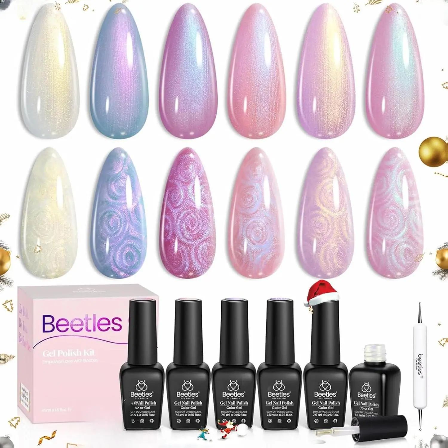 ·Beetles Mermaid Collection Christmas gel nail polish Set: The package includes 6pcs 7.5ML/ 0.25fl oz summer Christmas gel nail polish with mermaid unique design. This is 2-in-1 spring Christmas gel nail polish,not only can be pearl Christmas gel nail polish but also can be swirl thread nail gel. Color Number: La044-La043-La042-La041-La040-La039