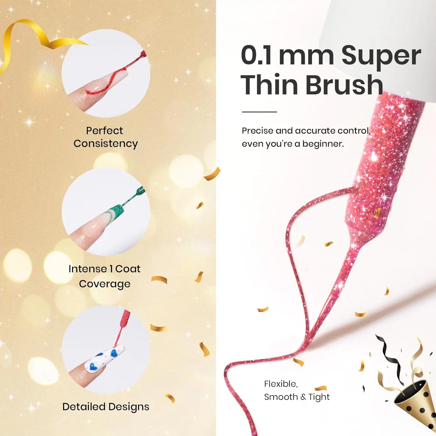 - Thin Brushes: Built-in brushes make nail art design easier and more precise.