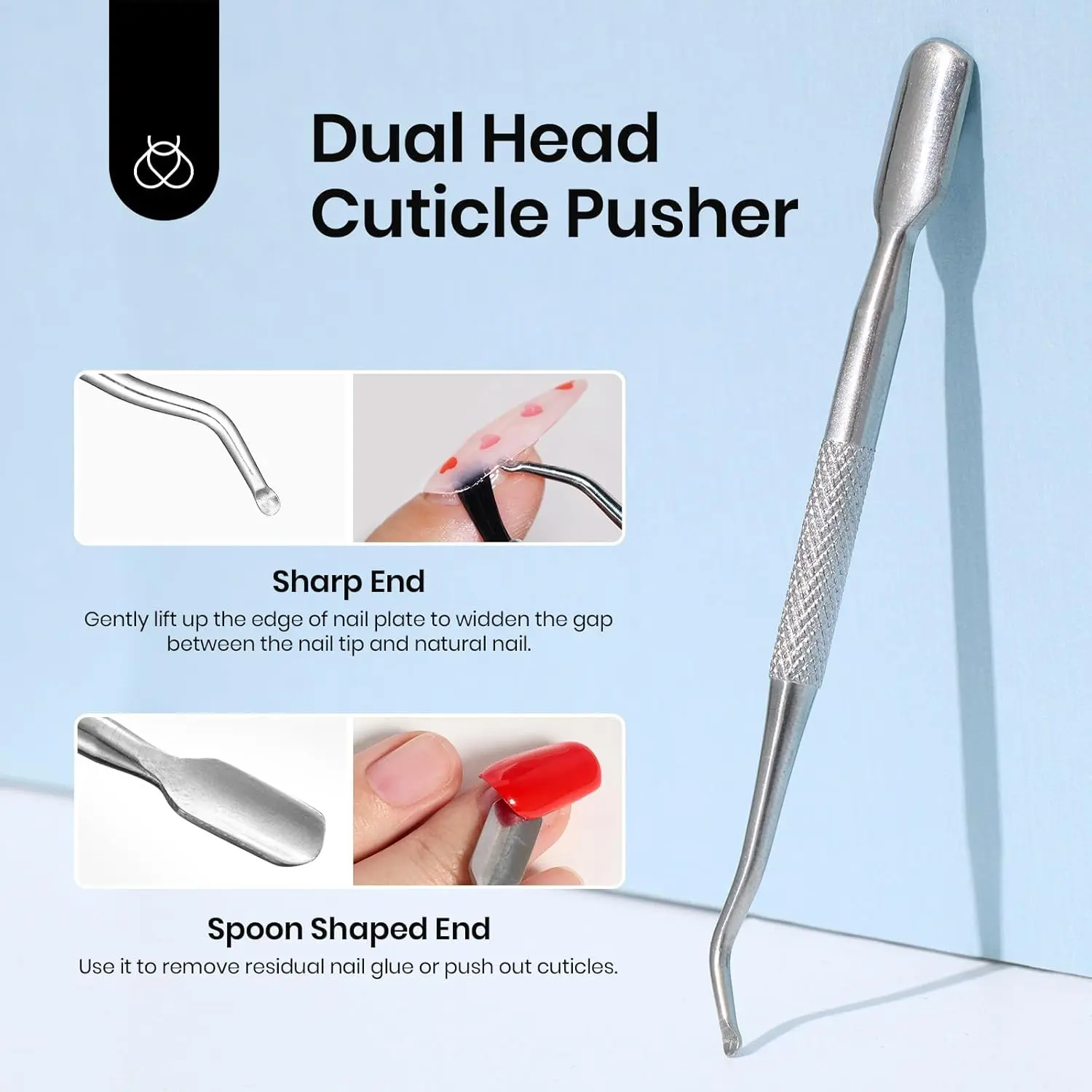 3Pcs 20ml Nail Glue*2+Dual Head Cuticle Pusher*1