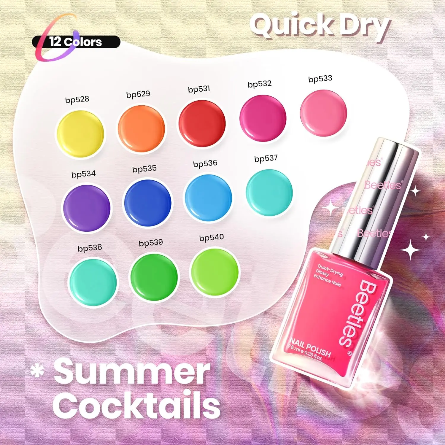 ·Beetles Neon Nail Polish Set: Includes 12 kinds of bright and glossy nail polishes. Our pigments offer high coverage and fix colors with an ultra-glossy effect. This nail polish bag adopts the latest fashionable tones, making your nails look more fashionable. There is no doubt that this is summer nail polish.