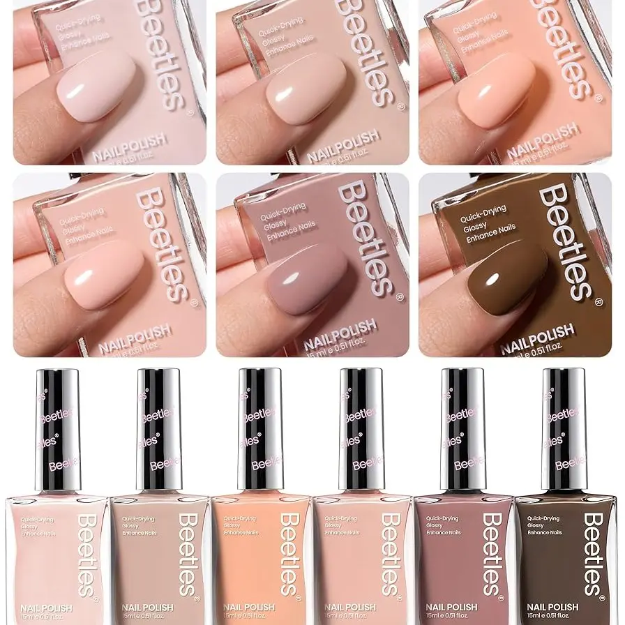 4. Beetles Brown Color Nail Polish Set,No UV lamp needed,Long Lasting & Quick Dry,Clear for Women,Nails Art,Nails at home,Manicure Beauty Products Pigment Translucent Salon Daily Gift Cutics Cosmetic #TikTokShopBacktoSchool