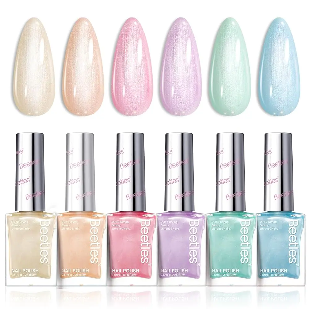 Beetles Jelly Nail Polish Set transforms your nails with elegance. It includes 6 colors, featuring a stunning sheer pink shade. Perfect for women seeking salon-quality manicures at home. The set comes in a compact package measuring 8.9 x 3.86 x 0.75 inches, weighing 14.07 ounces. Ideal for any season, it offers a soft gradient from light jelly pink to brown.