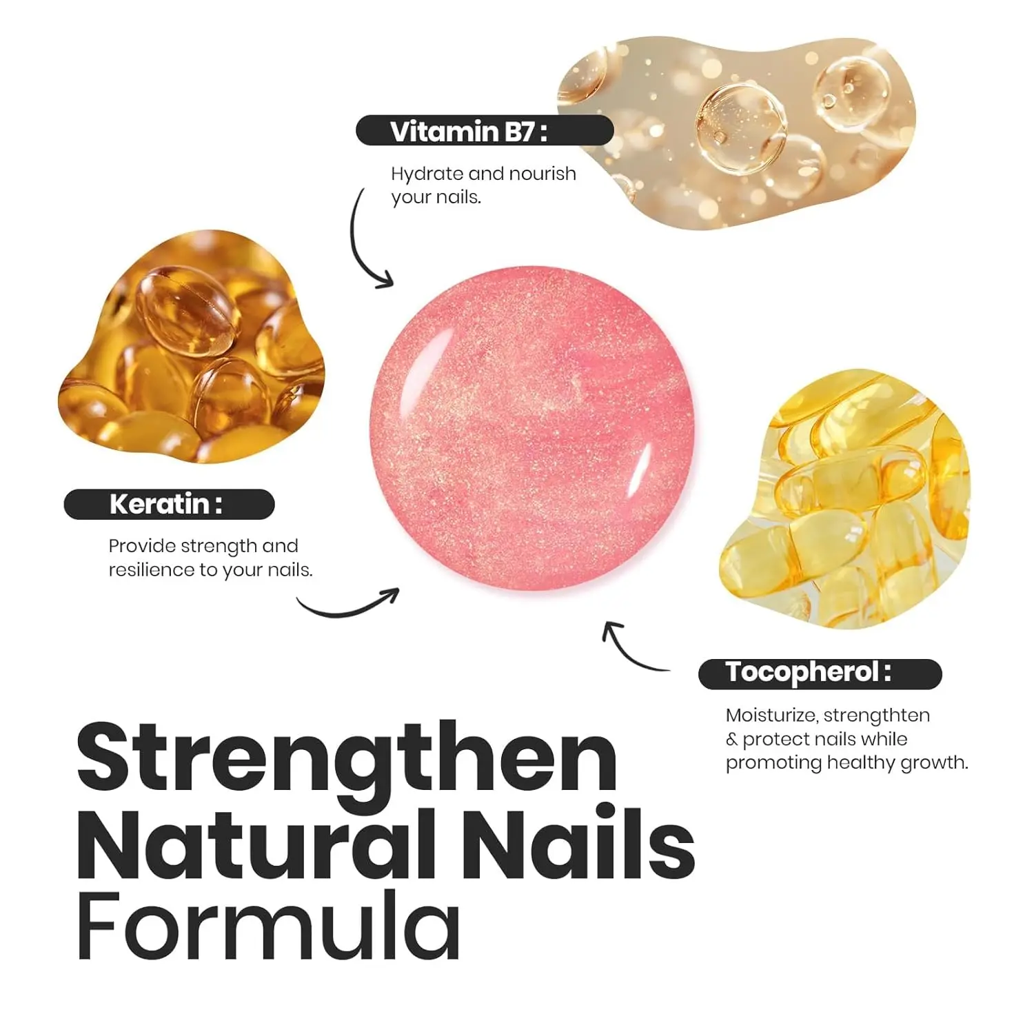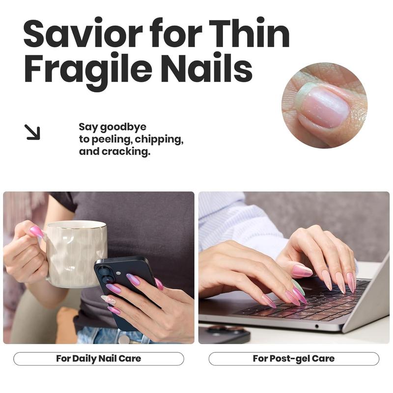 This nail polish dries in just 2 minutes and lasts up to 8 days. It doesn't need a UV/LED lamp. The jelly color resists falling off, ensuring your nails stay dazzling. The set contains keratin, vitamin B7, and tocopherol, enhancing nail thickness and hardness.