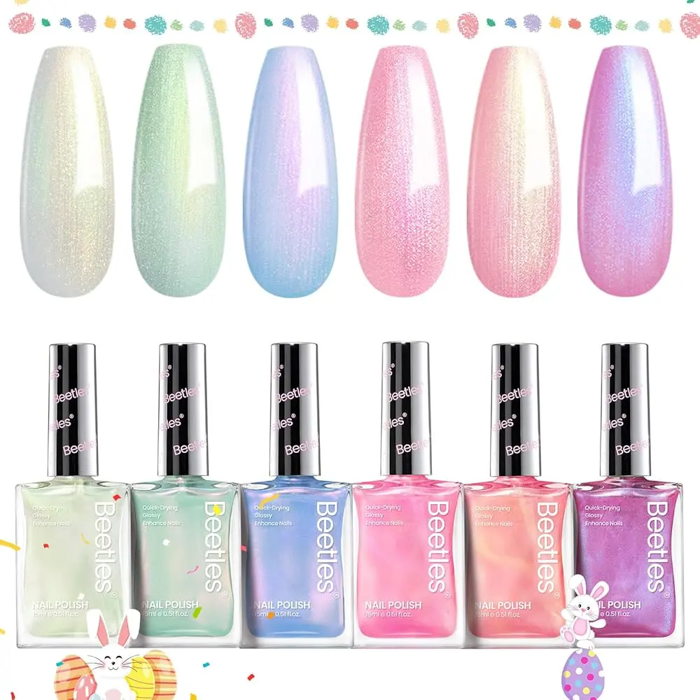 Beetles sheer 6 colors nail polish dries in 2 minutes. It lasts for 8 days without UV/LED lamps. The bright, dazzling color doesn't easily fall off. This set is perfect for frequent changes and daily makeup.