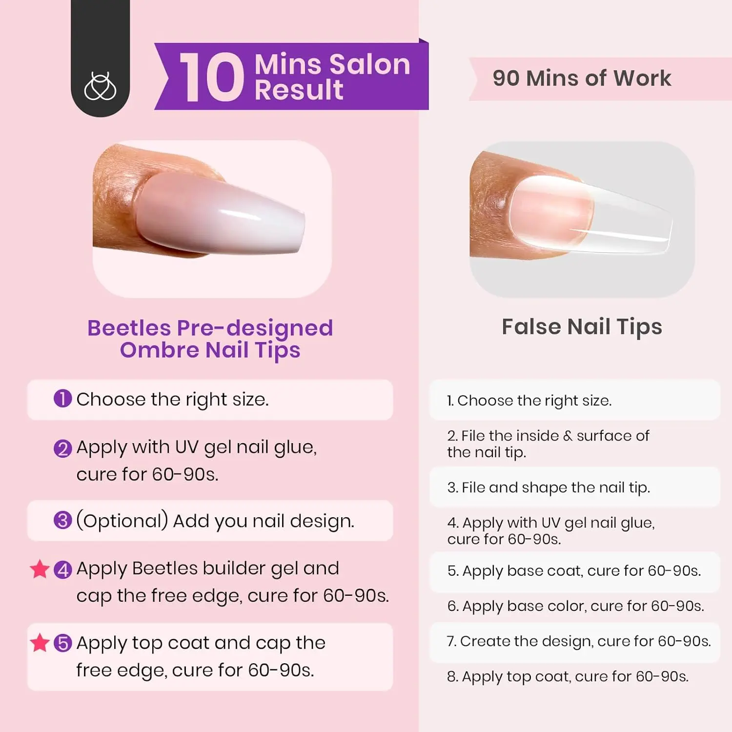 Short Square【Pink】15Sizes 150 Pcs Kit