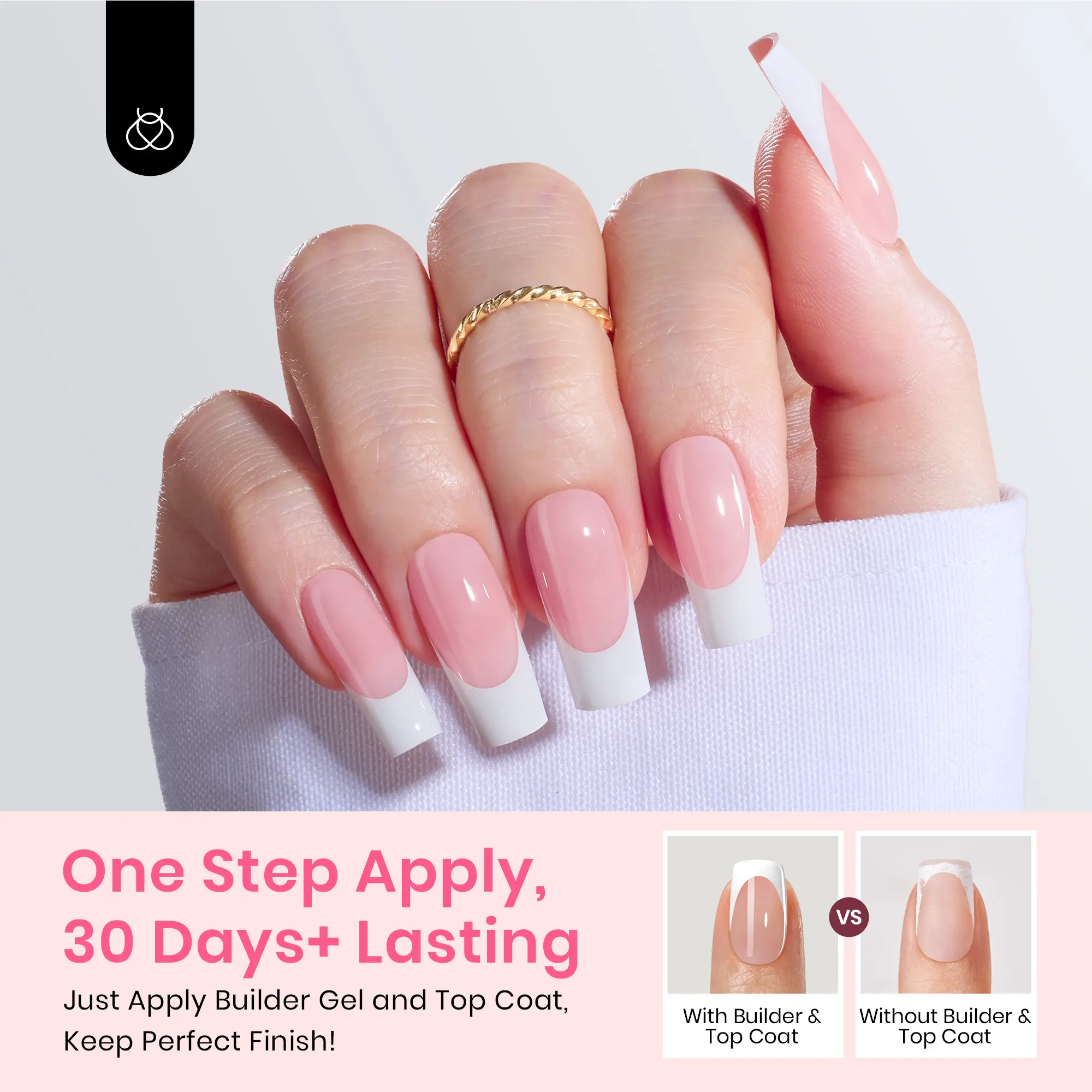 ·【4 in 1 Pre-applied & Easy to use】Beetles Pink Short Almond Press On Nails 4 in 1 Pre-applied with primer, soft gel tips, color gel and french Degin. They are more malleable, more natural, and pre-shaped. You can stick them on your nails with glue, then apply one layer of builder gel and one layer of top coat, and you're done, Even beginners can create salon-like nail extensions in a short time! (Not including builder gel and top coat)