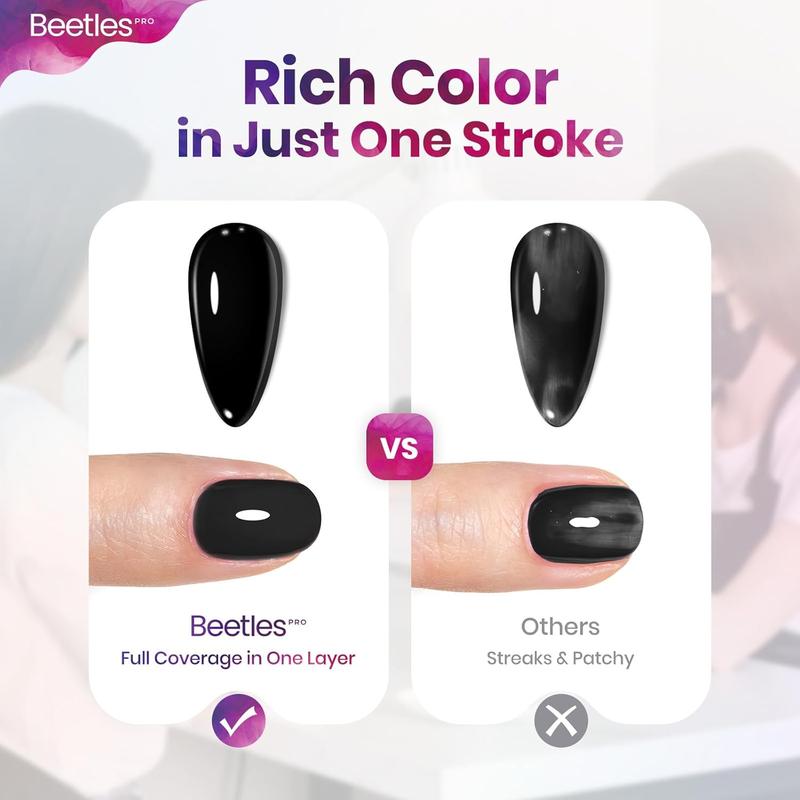 ·What You Get: 1 Pcs 20ml Beetles Pro gel nail polish. Highly pigmented formula delivers full coverage in just one stroke. Smooth, even color with no streaks or patchiness—perfect for both beginners and professionals.