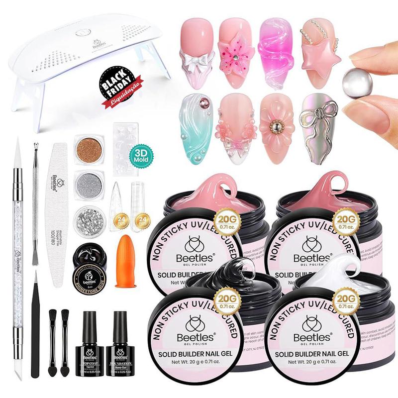 Introducing the Beetles Solid Builder Gel for Nails, a versatile and comprehensive kit designed to enhance your nail art experience. This 20g*4 colors hard gel for nails is perfect for creating stunning 3D nail designs, making it an ideal choice for both beginners and experienced nail artists.