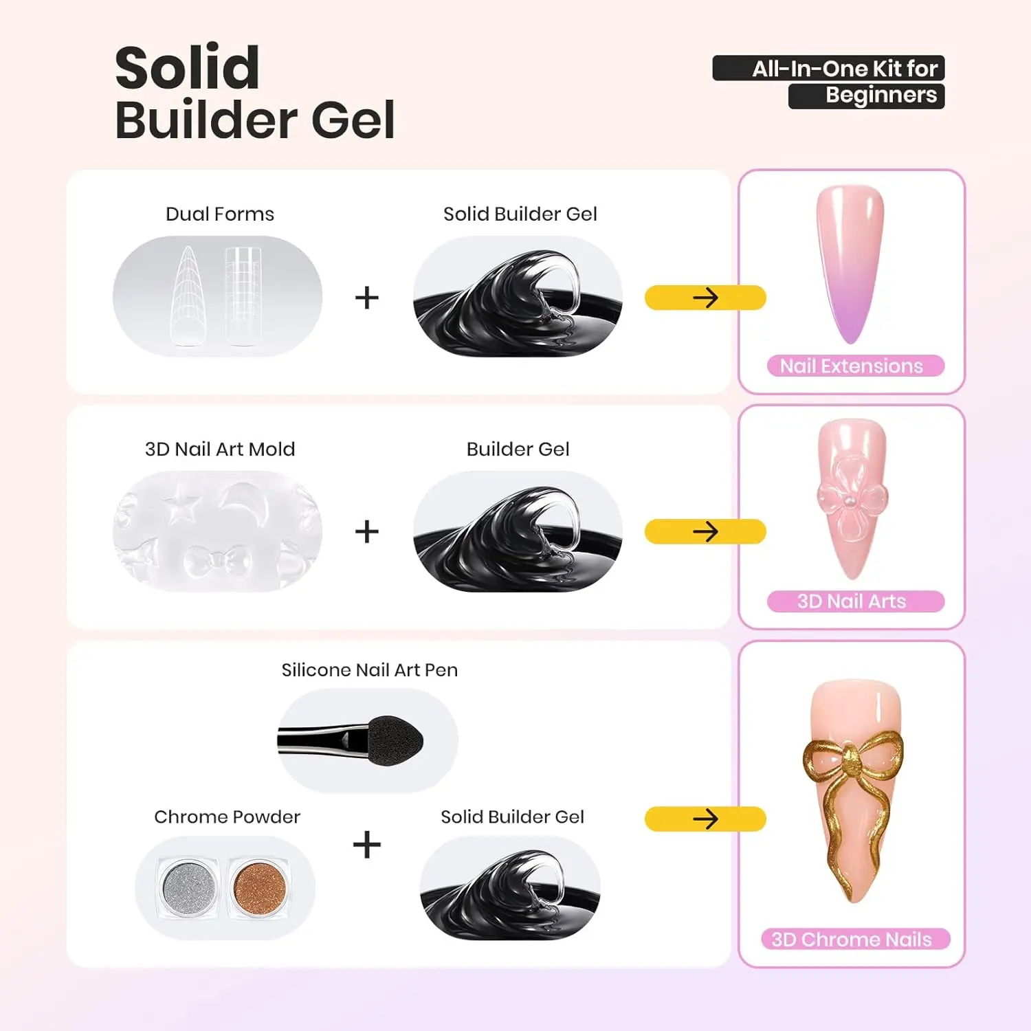 ·【Ideal Gift for Her】If you are looking for birthday, anniversary, Christmas, Mother's Day, Valentine's Day gifts for your family or friends, the 3D Solid Builder Gel Nail Kit will be a good choice. If you have any questions about solid builder gel for nails, please contact us, and we will be at your service at any time.