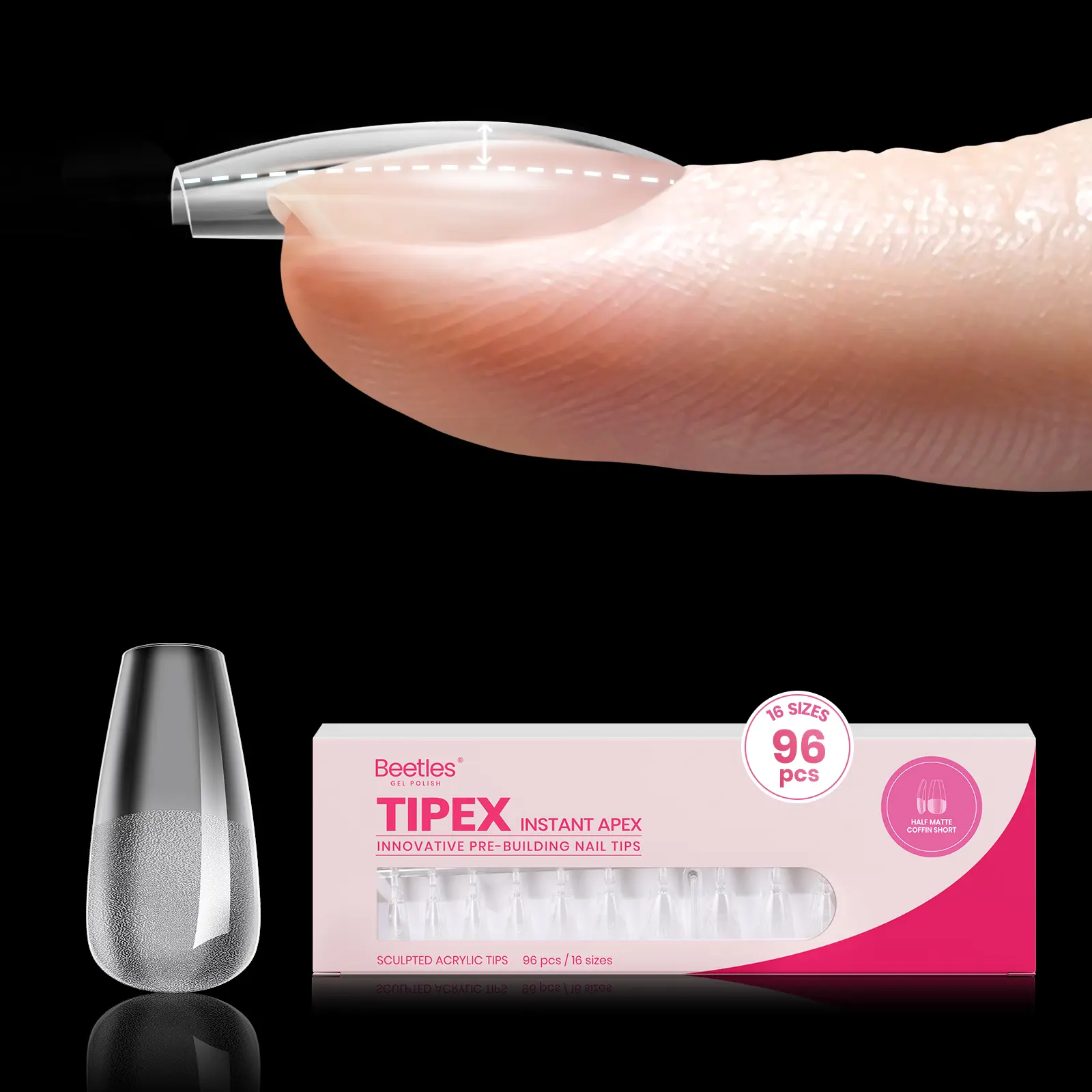 ·Beetles Tipex Nail Tips 2024 Upgraded: Tired of wasting time on nail prep? Tipex pre-sculpted, pre-etched and pre-shaped acrylic nail tips are here to rescue you! Beetles Tipex Nail tips come with a ready-made instant apex and c-curve, eliminating the tedious tasks of layering, filing, and shaping. Get ready to speed up your mani process with nail drill and save valuable time! Designed specifically for flat nails.