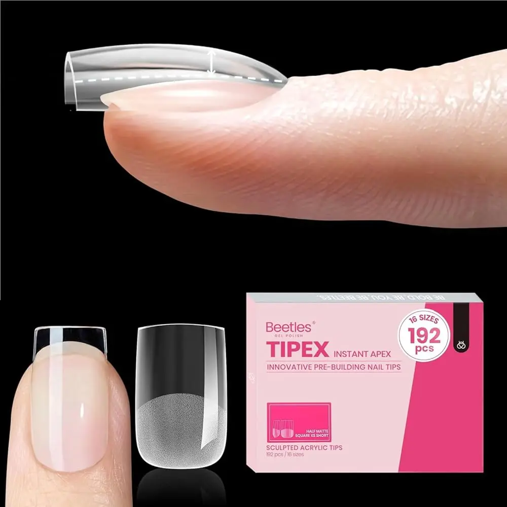 The Beetles Tipex Kit includes 224 pre-shaped tips, 20g solid UV nail glue, a mini UV lamp, and a nail file. Skip builder gel messes. Achieve salon-quality extensions at home easily, faster, and cleaner. Perfect for beginners!