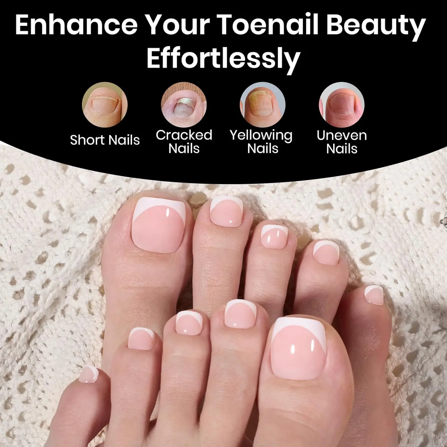 ·Upgraded Size: This Beetles big square toe nails tips is specially developed for wide nail beds, it contains 15 different sizes for a total of 240 fake toenails, 5 of these sizes are specifically for big toes, which is suitable for most foot shapes, especially for wide toes, even for men, you can find the right size for your feet