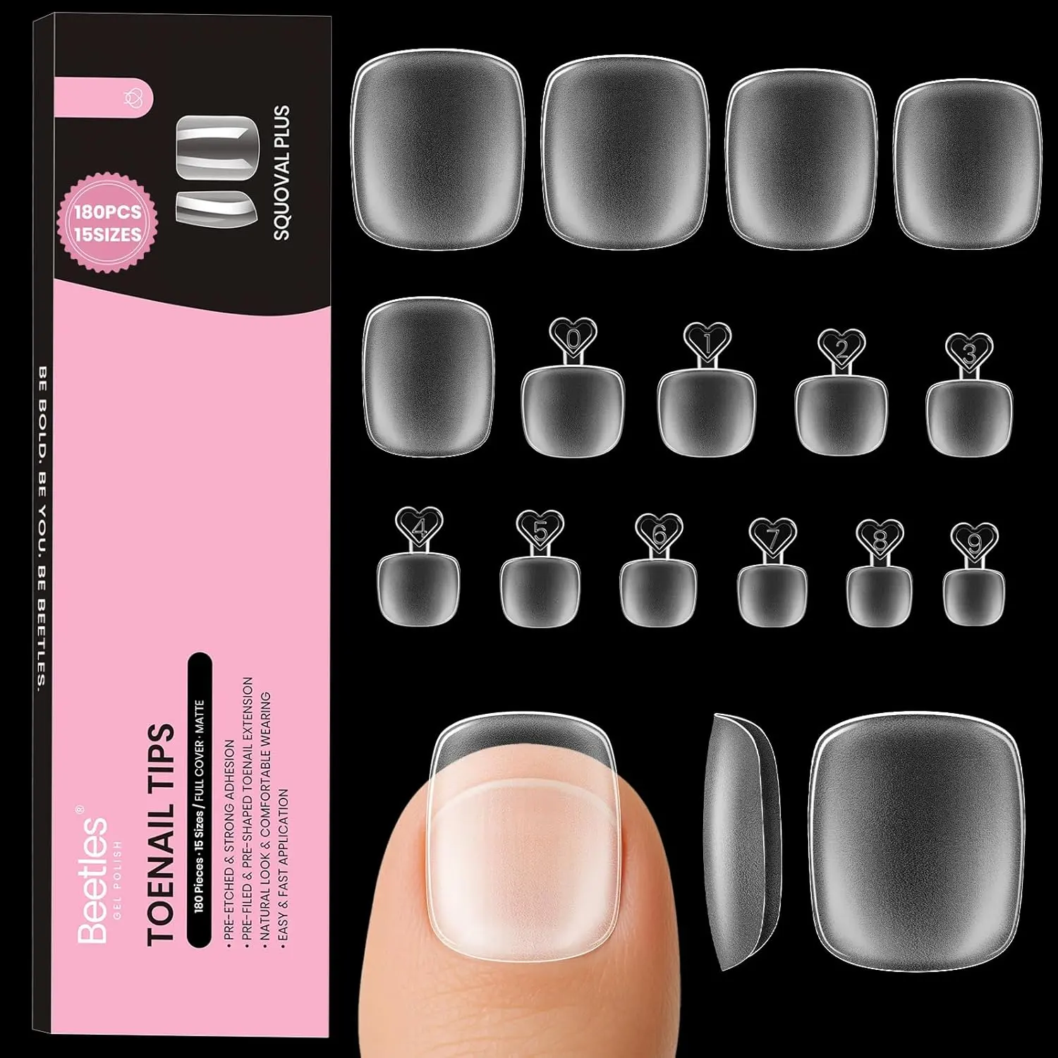 ·Toe Nail Tip Kit: Beetles acrylic toe nail kit includes 240 pieces 15 sizes of wider squoval toe nail tip, 10g*1 of semi solid nail glue, sponge toe separator and double sided 100/180 grit nail file! You can easily extend your nails and enjoy DIY nail art at home!