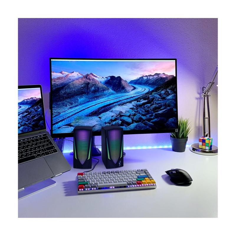Experience your favorite games on a whole new level with these 2.0 computer gaming speakers, delivering nuanced clarity and sound quality that allows you to immerse yourself in the action. From beFree Sound.